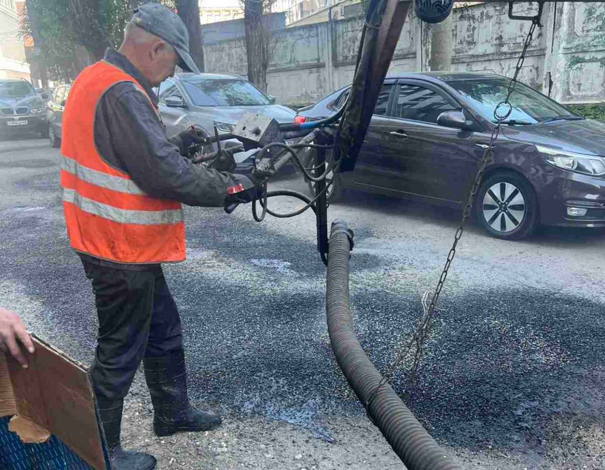 В целях приведения в надлежащее состояние городских дорог МБУ «Комбинат благоустройства Ленинского района» использует струйно-инъекционный метод для фрагментарного ремонта асфальтобетонного покрытия.