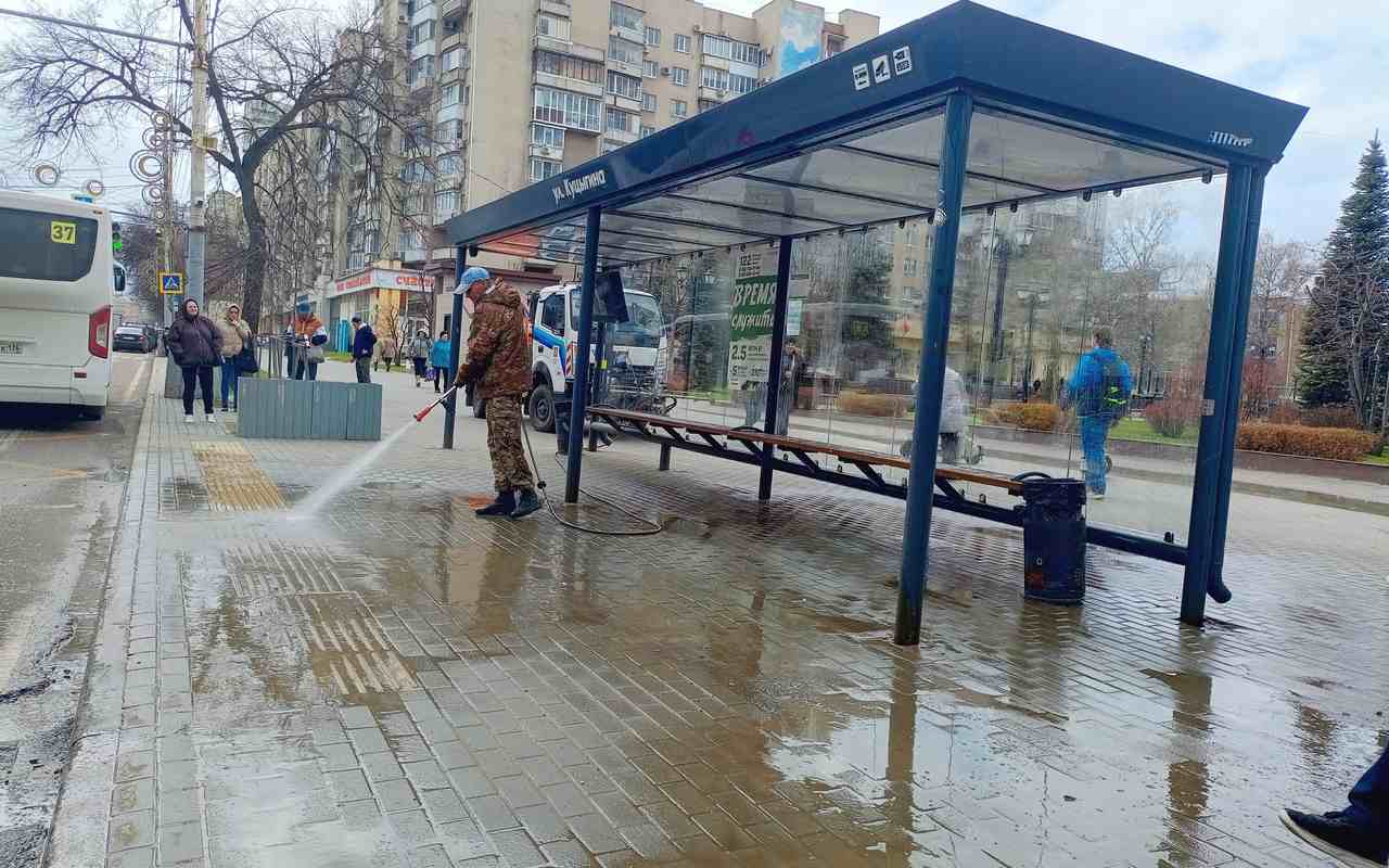 В частности, тщательно отмывают после зимы все поверхности остановочных павильонов городского транспорта и прилегающую к ним территорию.