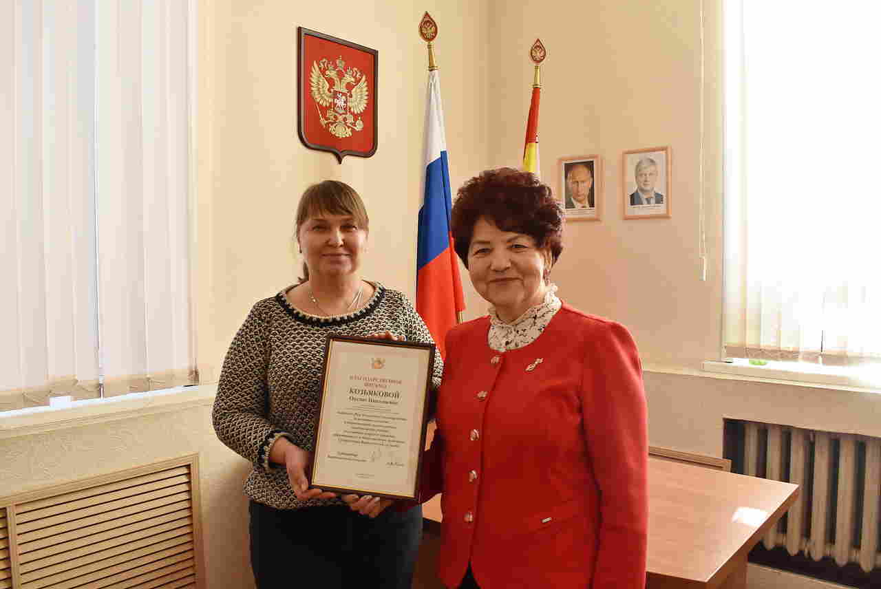Руководитель общественной приемной Зинаида Полонец вручила Благодарственное письмо губернатора Воронежской области сотруднику отдела ЖКХ управы района Оксане Козьяковой за активную помощь гражданам и вклад в решение их проблем.