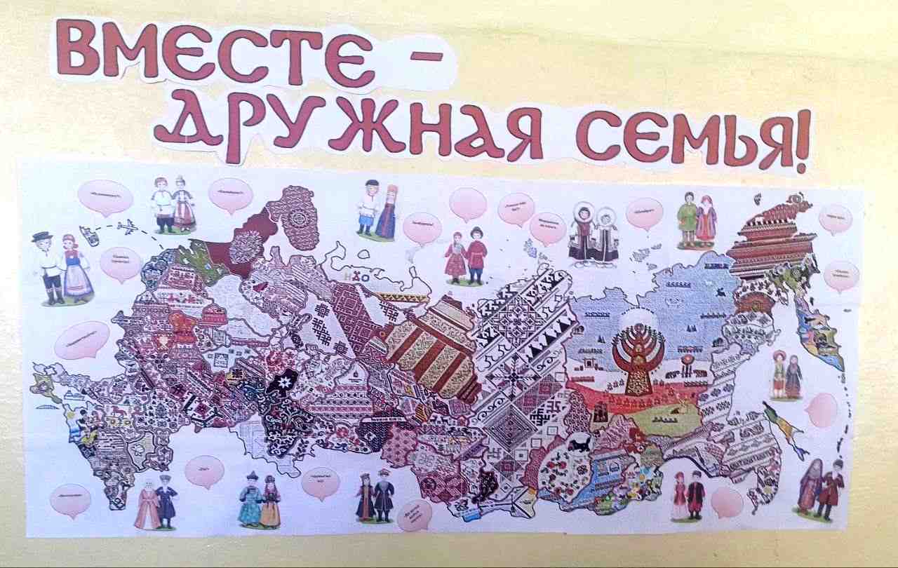 Эта карта наглядно демонстрирует разнообразие культур, проживающих на территории России, подчеркивая значимость каждой этнической общности и её уникальных символов.
