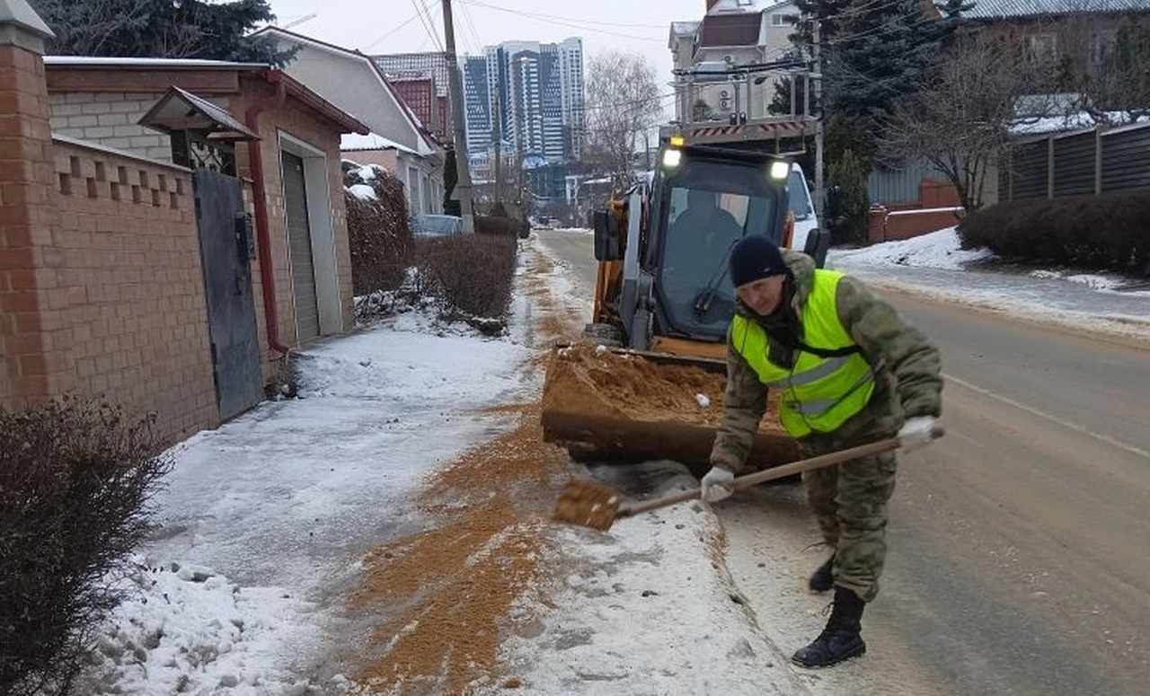 - Несмотря на капризы зимней погоды, продолжаем необходимую работу по поддержанию должного санитарного порядка на территории района в круглосуточном режиме. Сегодня с утра работники КБУ заняты обработкой тротуаров противогололедными материалами, в частности на улицах Кропоткина, Никитинская, Станкевича, Б. Стрелецкая и других, - отметил глава Ленинского района Иван Молоканов.