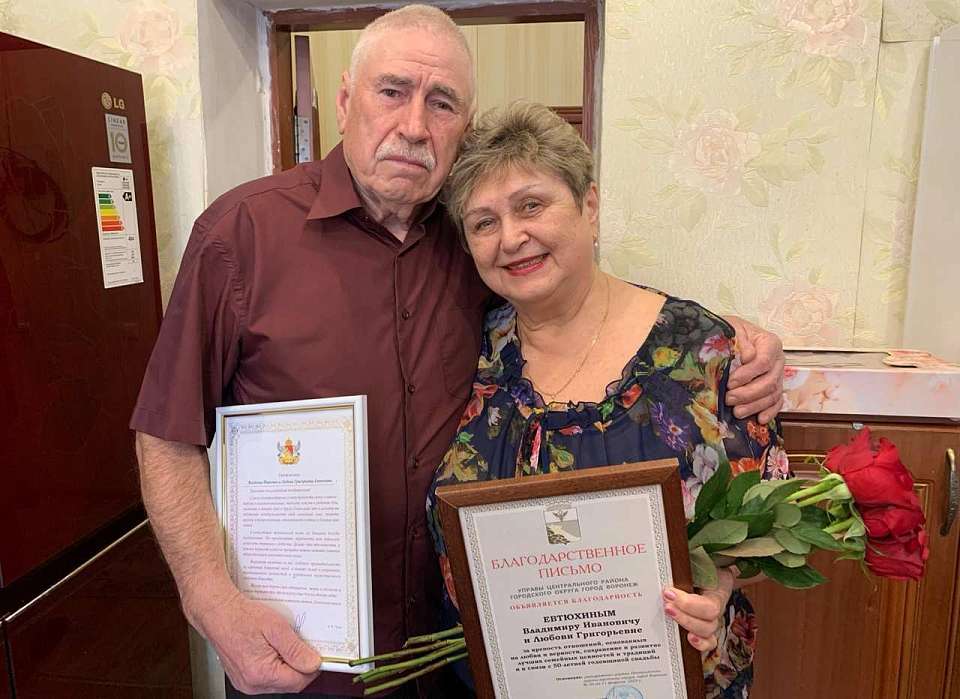 Супруги зарегистрировали брак 12 февраля 1975 года во дворце бракосочетания. Со слов юбиляров их судьба свела на работе – в Конструкторском бюро химавтоматики города Воронежа. Любовь Григорьевна окончила Воронежский технологический институт, работала в Конструкторском бюро с 1969 по 2015 год, пройдя трудовой путь от чертежницы до ведущего инженера. Владимир Иванович получил высшее образование Воронежского политехнического института. Посвящая себя своей любимой работе, построил карьеру там же где и супруга, пройдя путь от токаря до начальника отдела труда и заработной платы.