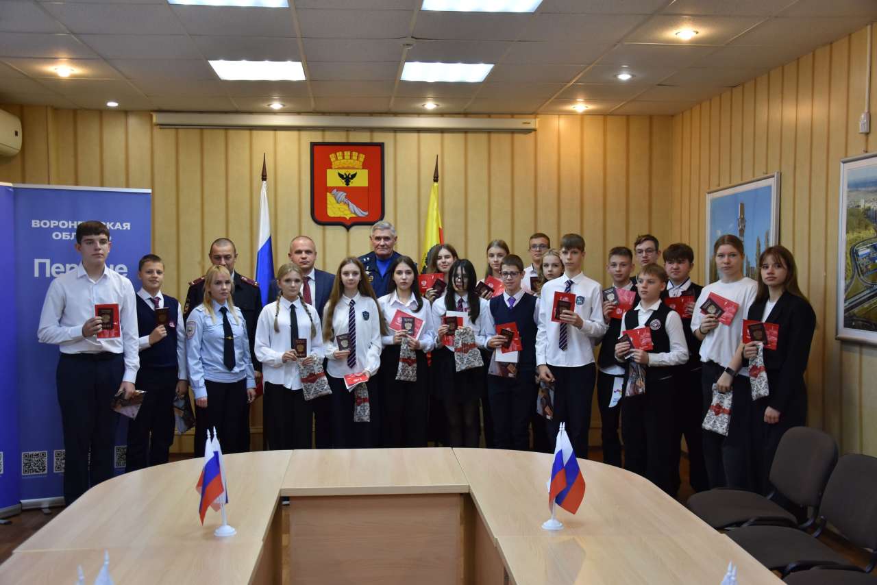 Продолжился праздник церемонией вручения паспортов. Двадцати активистам Движения Первых главные документы вручили Александр Бахтин и Сергей Бочкин совместно с инспектором отдела полиции №1 УМВД России по городу Воронежу Кристиной Деминковой. Каждый ребёнок также получил на память о мероприятии сувениры и основной закон страны – Конституцию Российской Федерации, которую должен соблюдать каждый гражданин.