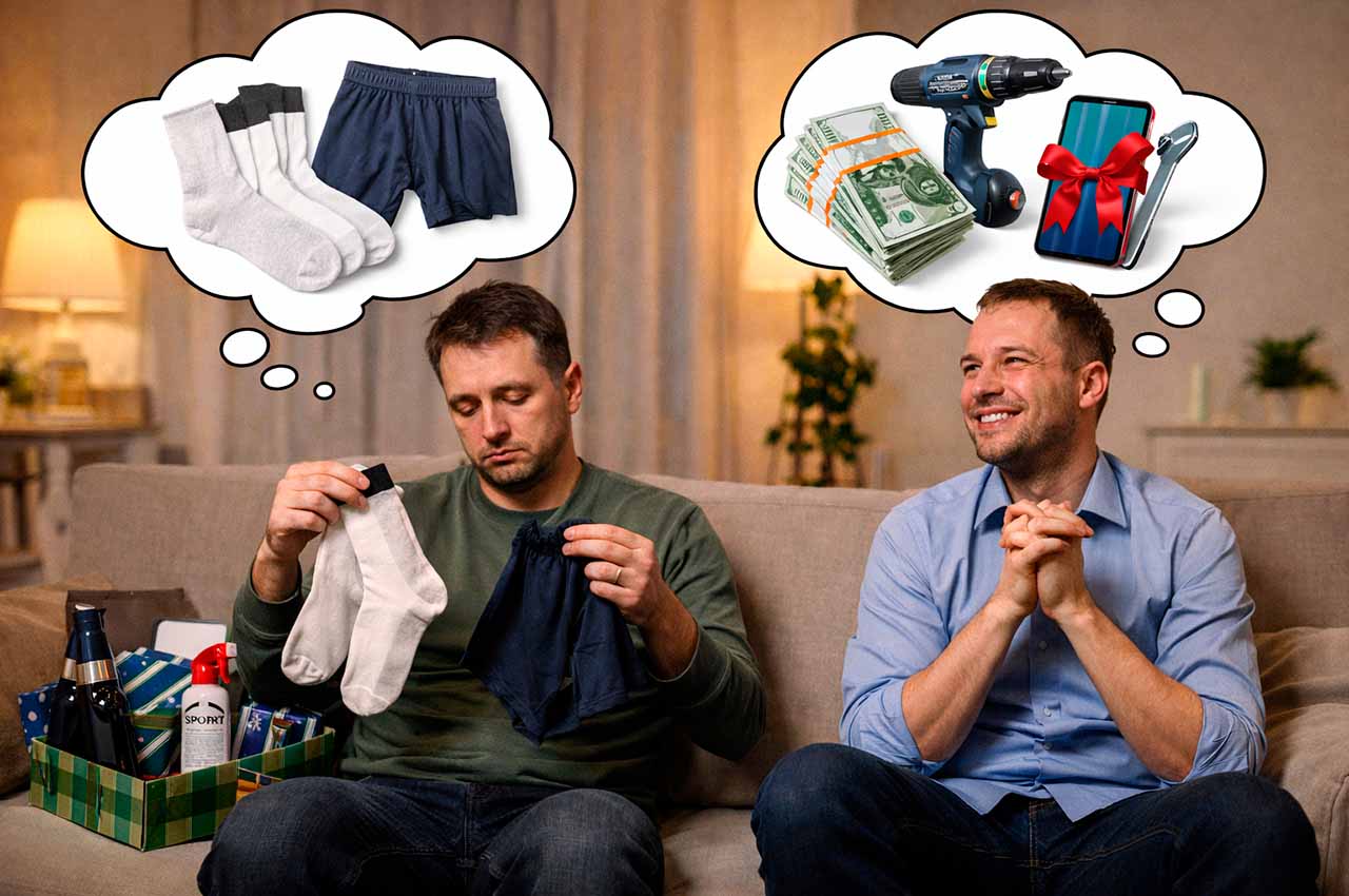 Однако реальность, увы, сурова: деньги получают в подарок лишь 5% мужчин. На вершине реального рейтинга подарков остаются «мемные» классические наборы: одежда, носки и белье (21%), а также парфюмерия и средства для ухода (12%).