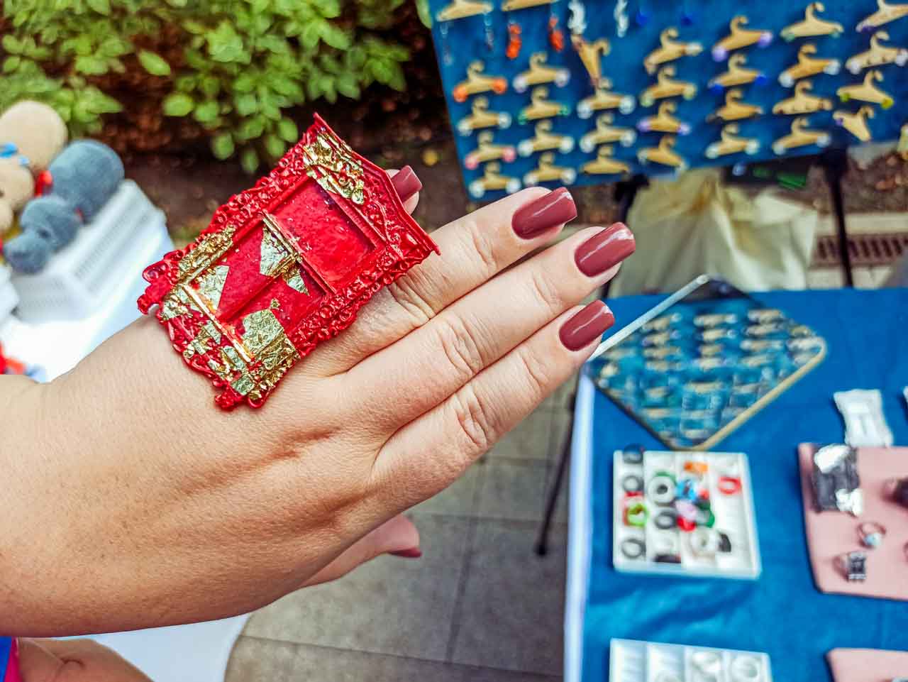 Среди яркого разнообразия выставки ручной работы особенно выделялись необычные украшения − миниатюрные «окошки», словно сошедшие со стен старинных деревенских домов. Серьги, кольца и кулоны с резными узорами притягивали взгляды посетителей, будто предлагая заглянуть в уютный мир русской сказки.