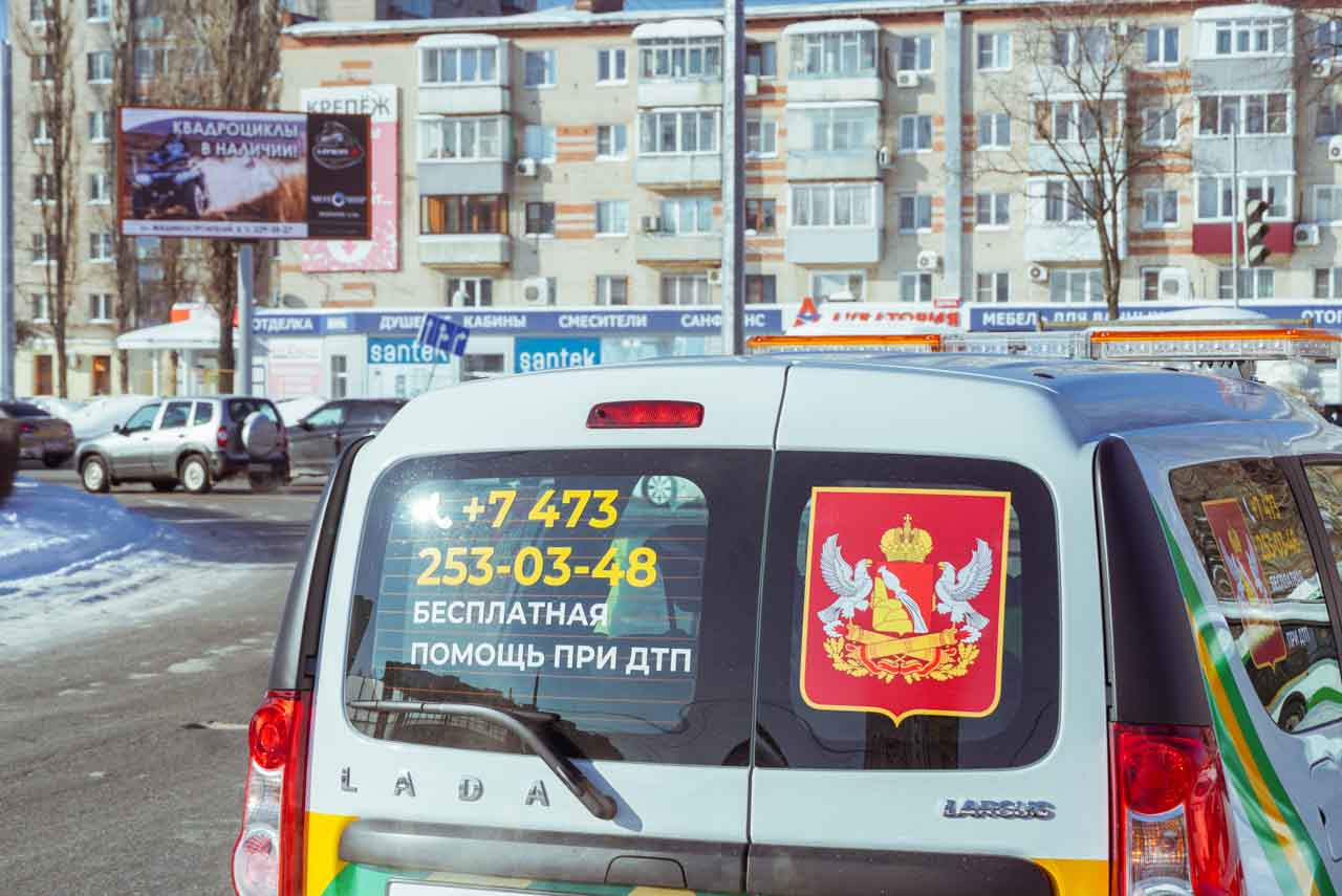 • Вызов. Участники ДТП звонят по номеру 112 или на прямую горячую линию +7 (473) 253−03−48. Номера будут размещены на билбордах, цифровых экранах и на бортах автомобилей патруля.