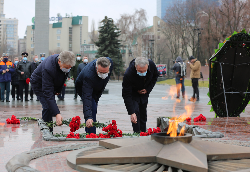 Отдать дань памяти безымянным и пропавшим без вести воинам к Вечному огню пришли губернатор Воронежской области Александр Гусев, глава Воронежа Вадим Кстенин, председатель городской думы Владимир Ходырев, представители муниципальных и региональных органов власти, правоохранительных и силовых ведомств, общественных и ветеранских организаций, а также духовенства.
