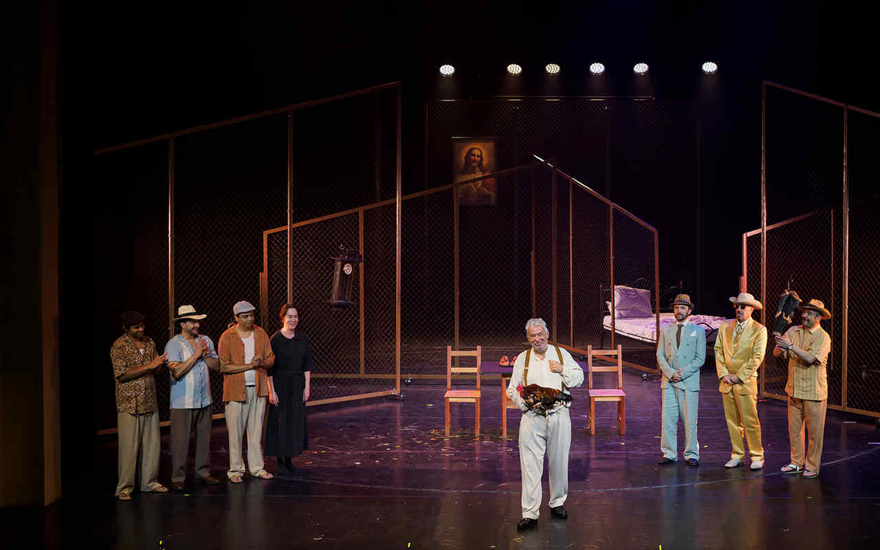 – Нас очень беспокоило, как он поведет себя на сцене. Но когда я его только увидел в России, то понял: в нем есть нечто, что я бы назвал породой. Это оказалось на редкость благородное животное, при нашем взаимодействии не использовало ни клюв, ни шпоры, и мы сразу стали выстраивать наши отношения. Он чутко реагирует на мой голос и прикосновения. Сейчас в Воронеже мы живем в одном номере отеля и разговариваем по ночам. Он поет в 4, в 5, в 7 утра – я ему отвечаю. Ведь в Колумбии и в Нью-Йорке, где в 2018 году состоялась премьера спектакля, с нами были другие два петуха – сначала Овидий, потом Лукрецио. А этого в России я назвал Петя. В спектакле он становится настоящим конфидентом полковника, и через этот диалог зритель узнает, что происходит во всем городе. Здесь, конечно, есть еще и жена, но с нею отношения сложнее. И есть большая тайна, настоящая магия в том, как русский Петя воспринимает текст Маркеса, который я произношу на сцене и который звучит почти как музыкальная партитура, – рассказывает Херман Харамильо.