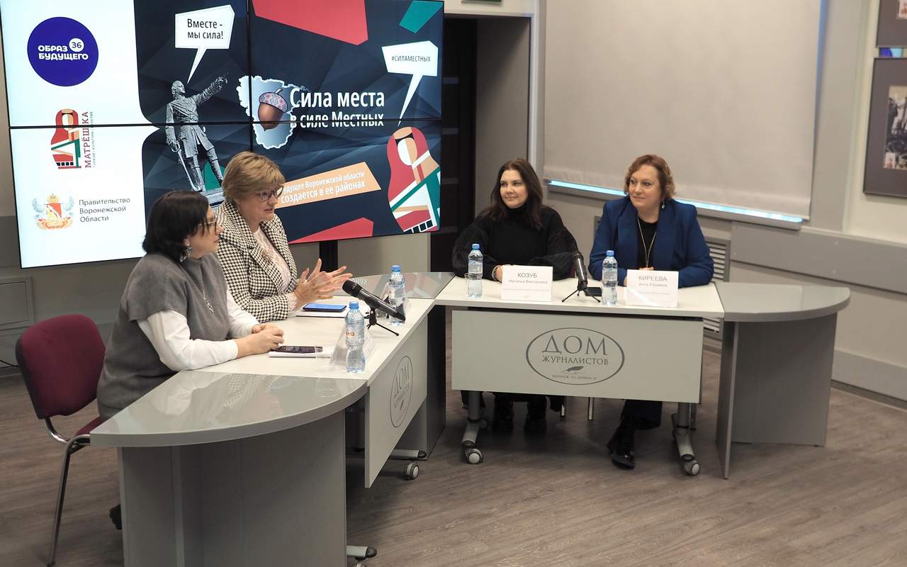 О проекте «Сила места – в силе местных» рассказали директор АНО «Матрешка» Елена Суслина, руководитель экспертного сообщества «Страктика» Анна Киреева, организатор социокультурных событий, член областного отделения Общероссийской общественной организации малого и среднего предпринимательства «Опора России» Наталья Козуб и руководитель проектов АНО «Матрешка», основатель Клуба отельеров Черноземья Наталия Струтинская.