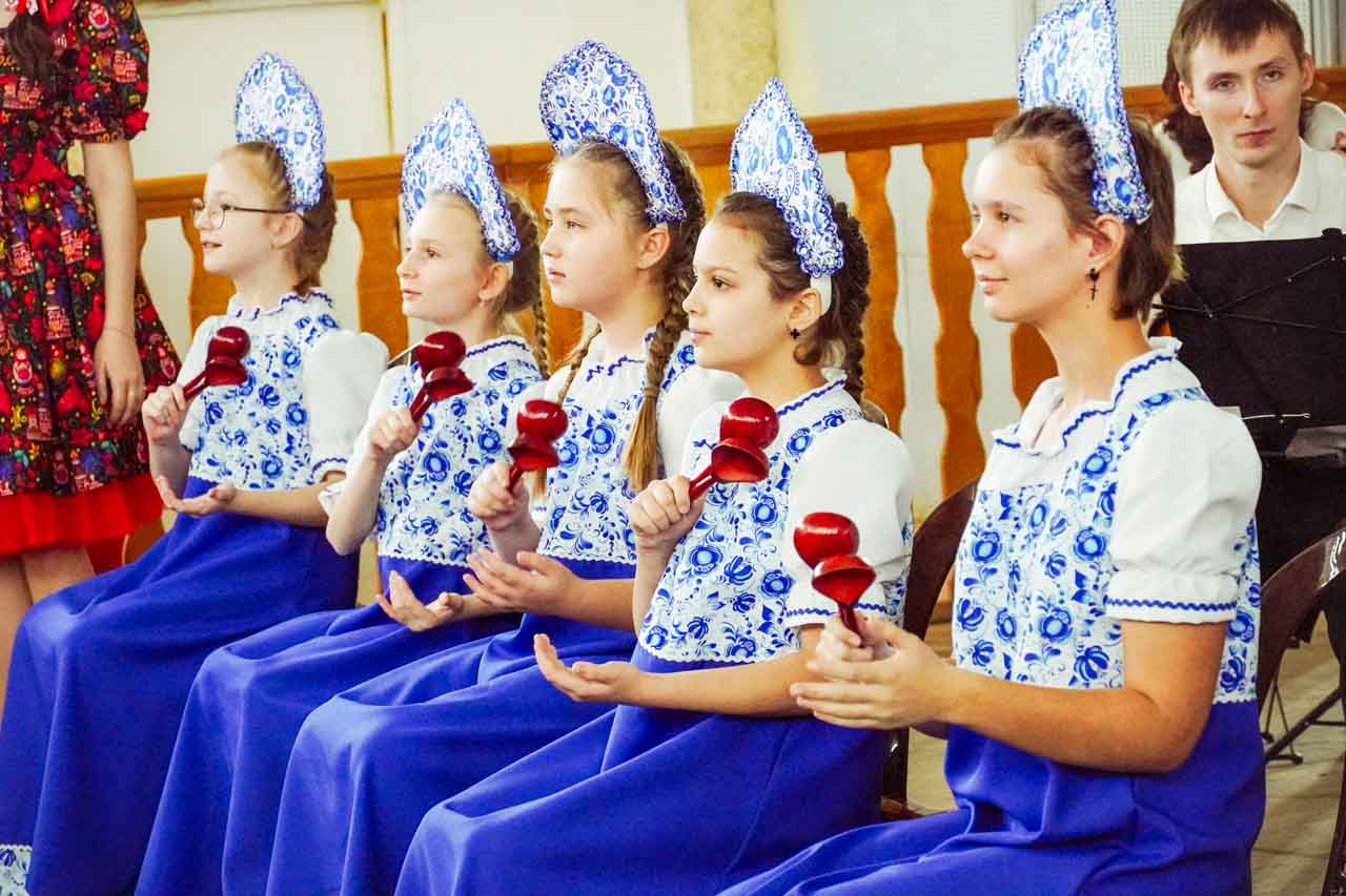Я очень рад, что именно мы собрали сегодня гостей. Наша воронежская Детская школа искусств №5 имени Романова старается заинтересовать детей русской культурой, у нас множество направлений: народные инструменты (балалайка, домра, баян, аккордеон, гитара), духовые, струнные, фортепиано, хореография и художественное отделение, прекрасные хоры − не один, а несколько, для разных возрастов. И три оркестра! Школа мощная, больше тысячи учеников!
