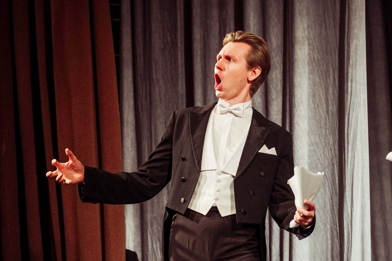 Ну а самым массовым стало выступление артистов Воронежского государственного театра оперы и балета. Хор, инструментальный ансамбль и солисты (Иван Кураев и Марк Ким) подробно воспроизвели фрагмент из знаменитого советского мультфильма «Пиф-паф, ой-ой-ой», пародирующий оперные штампы. С одной стороны, этот номер оригинальным не назовешь, с другой – столь точное попадание в стилистику первоисточника, помноженное на тонкую самоиронию, требует, помимо профессионального мастерства, проявления хорошего вкуса и чувства меры. Что с успехом и продемонстрировали артисты оперного театра.