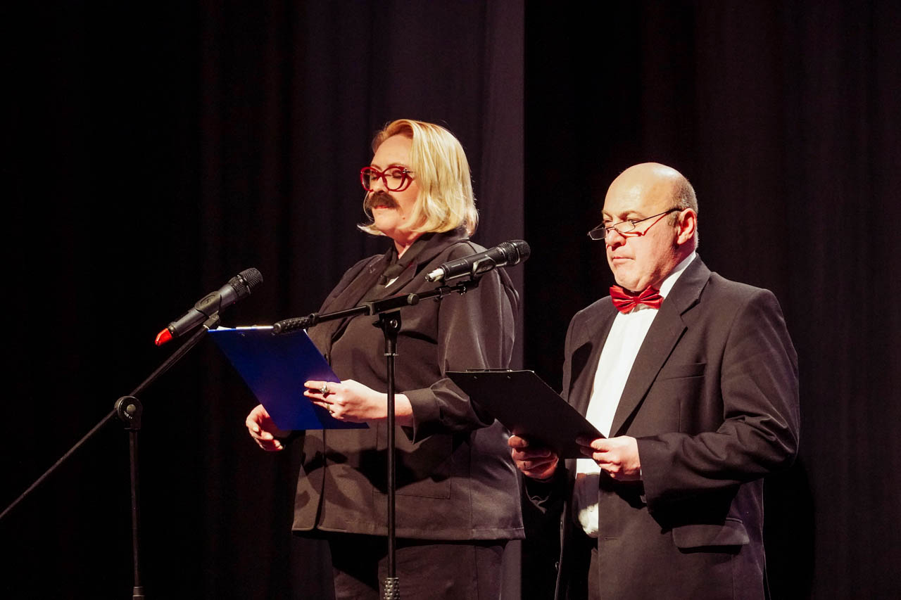 В этот субботний вечер, едва переступив порог Дома актера, все пришедшие сюда попадали в праздничную атмосферу: публику встречали персонажи на ходулях, в фойе звучал струнный квартет, а рядом иллюзионист демонстрировал фокусы, секрет которых тщетно пытались разгадать даже самые внимательные зрители. Но основное празднование развернулось в зрительном зале. Официальная часть была недолгой – председатель регионального отделения СТД народная артистка РФ Татьяна Фролова, пожелав всем собравшимся счастья, здоровья и любви, пригласила к микрофону министра культуры Воронежской области Марию Мазур.