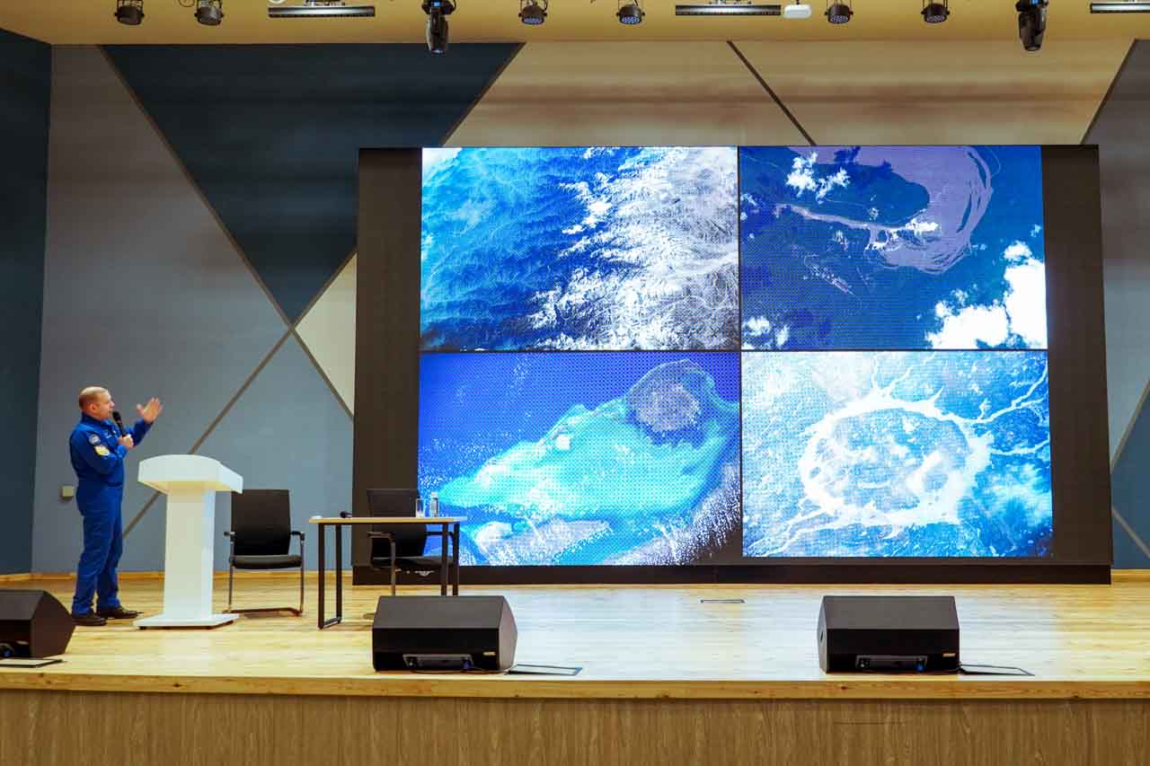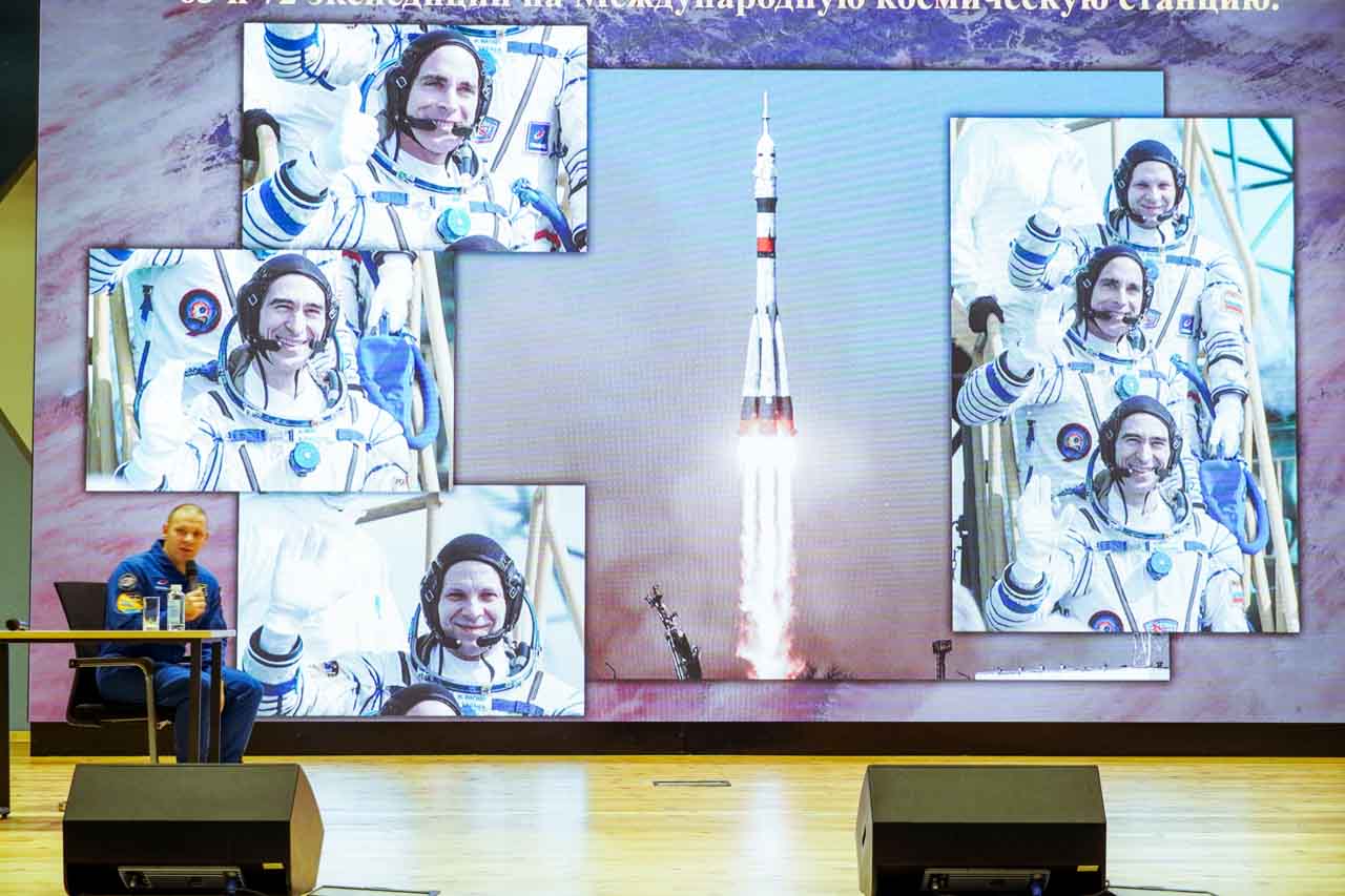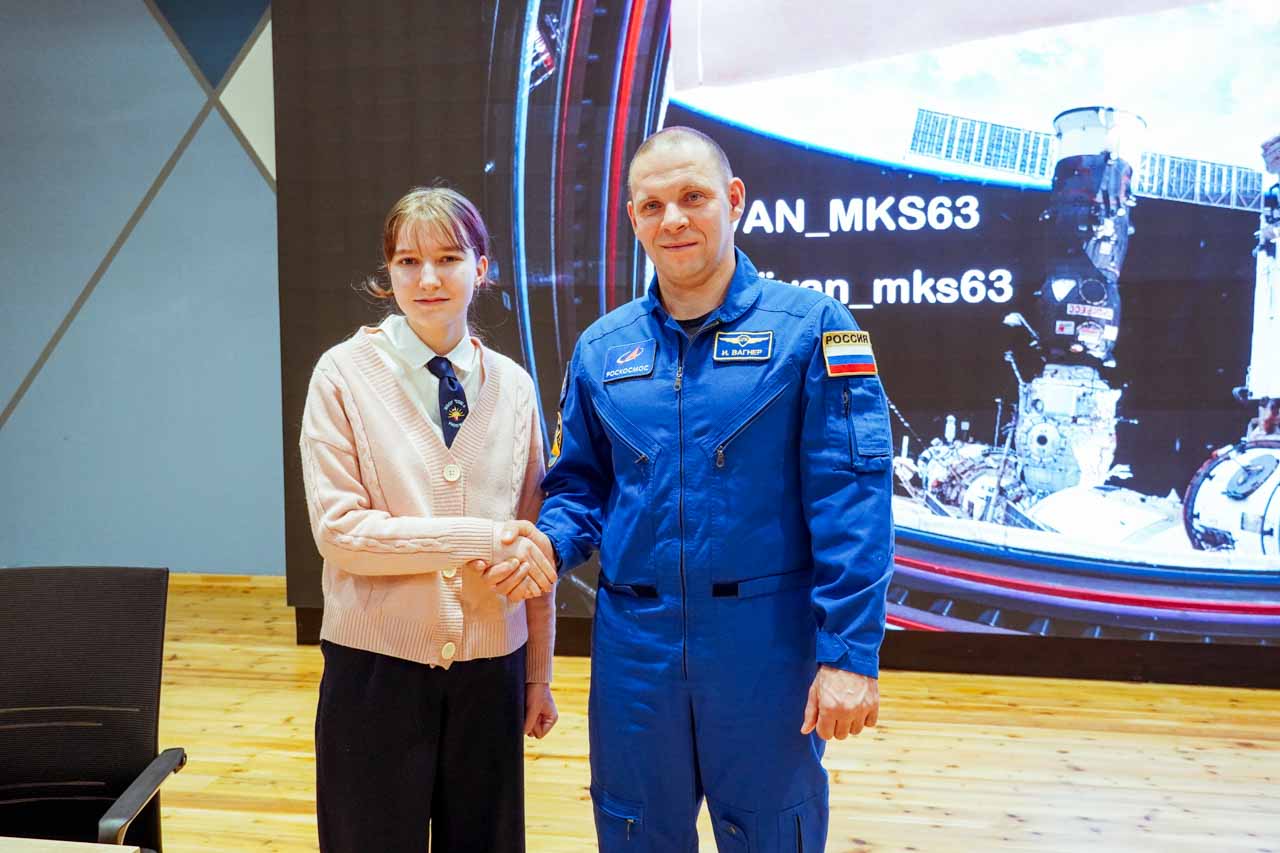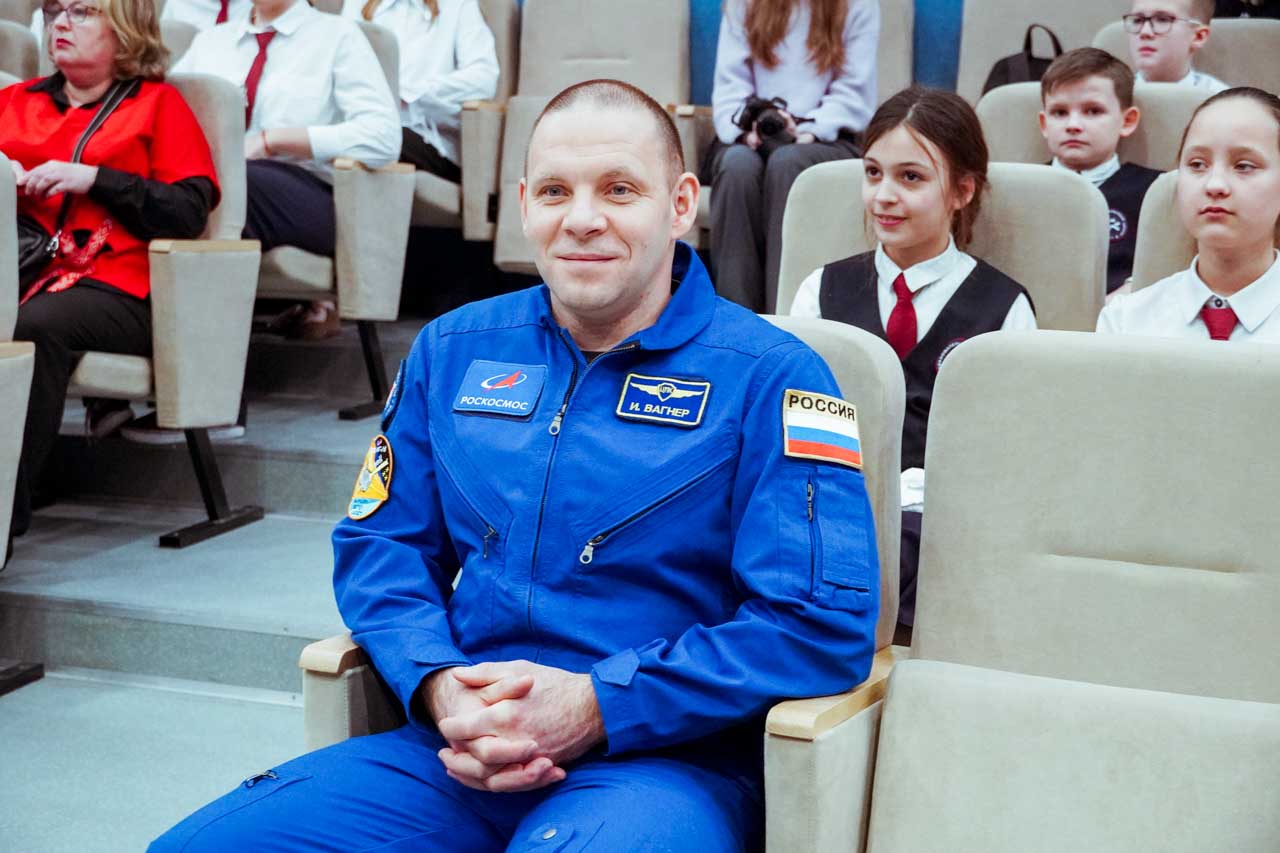 На экране – не учебные материалы, а вид на гималайские хребты из иллюминатора МКС, извержение вулкана, ночное сияние городов. А перед школьниками − космонавт Иван Вагнер, совершивший две длительные экспедиции на орбиту. Он просто и увлеченно рассказывает о своей работе, будто приглашая всех ненадолго на борт станции.