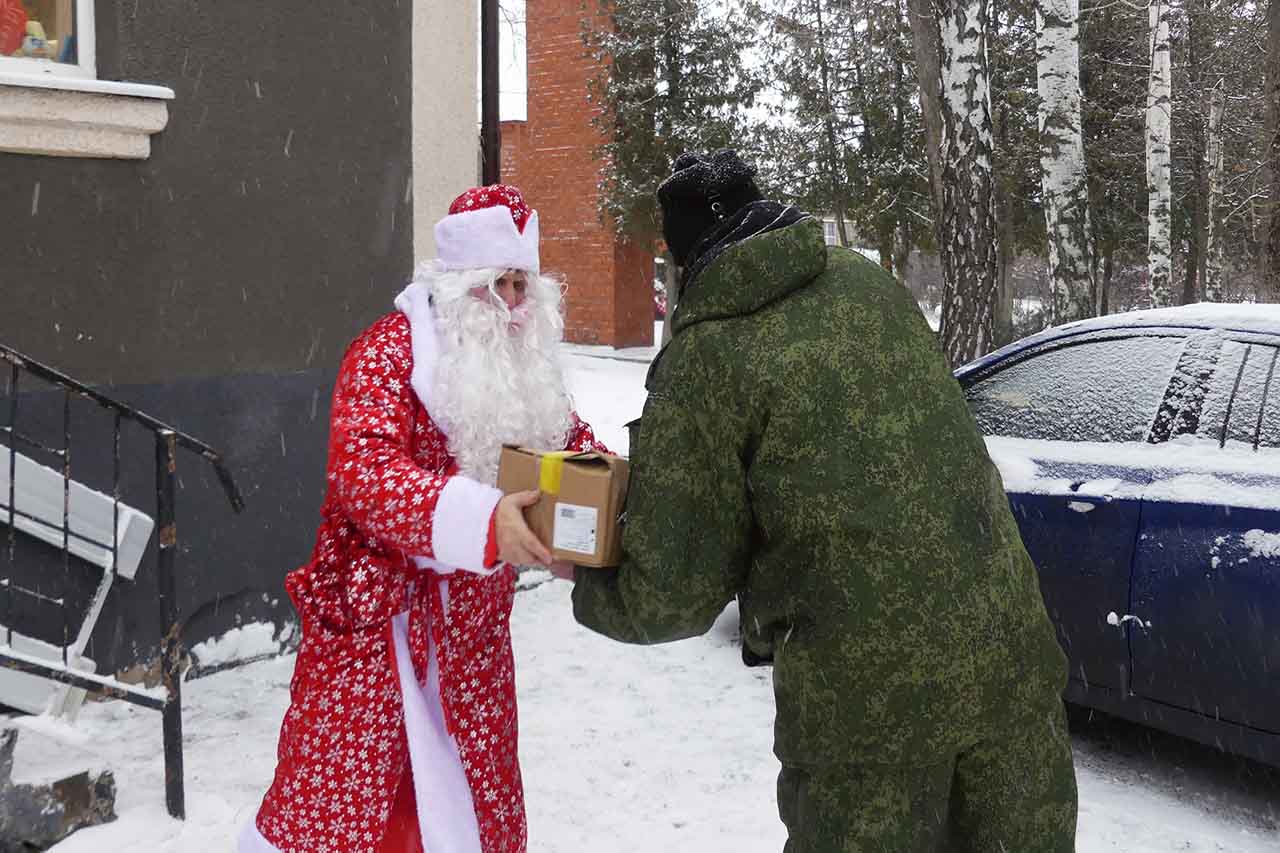 К слову, Геннадий Шеменев, тот самый председатель ТОС и генеральный директор предприятия, тоже не пропустил передачу гуманитарки. Сразу его не узнать – среди людей в камуфляже он «спрятался» в костюме Деда Мороза.