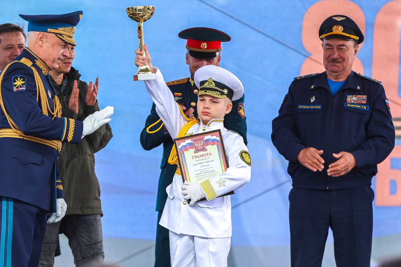 Первыми вышли самые маленькие участники парада – воспитанники детского сада № 74, а за ними – «юные пехотинцы» из сада № 148. Торжественным шагом прошли «спецназовцы», «пилоты», «морская пехота», «моряки» и «лётчики» – учащиеся начальных классов и среднего звена.