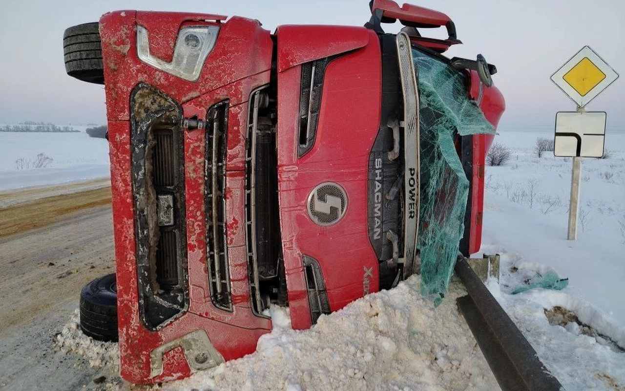 За рулем находился 40-летний житель Нижегородской области. Как полагают в полиции, он в какой-то момент не справился с управлением своей фурой.