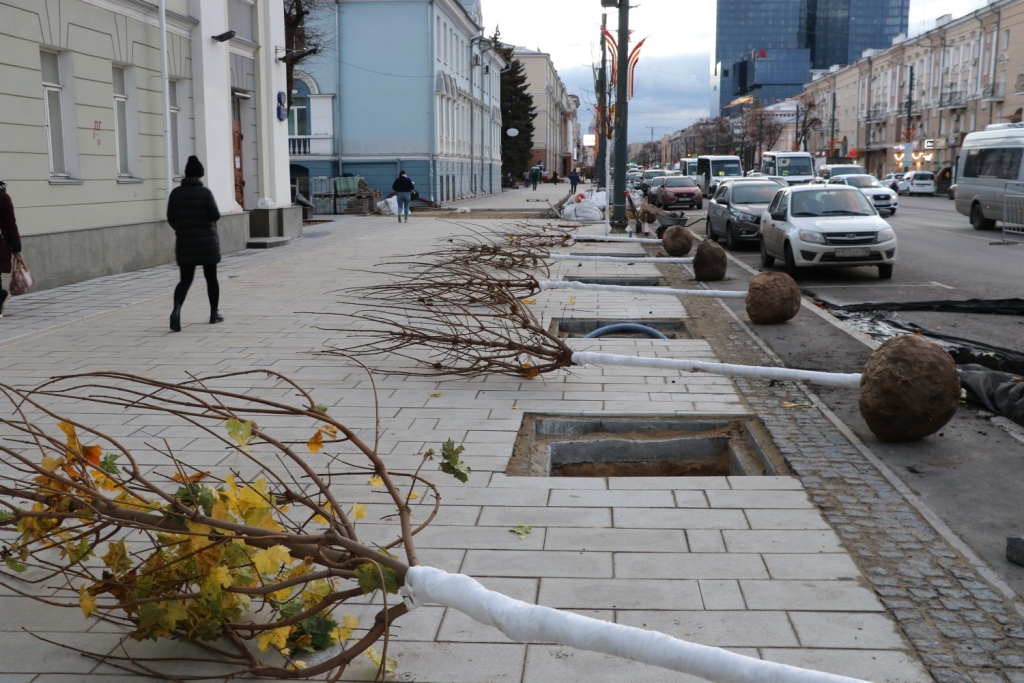 В начале реализации масштабного проекта работники филиала под контролем специалистов-экологов провели пересадку 27 старых лип на новое место в Коминтерновском районе города. Этот технически сложный и кропотливый процесс был выполнен без урона для растений. Вместо них появились новые деревья. 64 крупномерных саженца клена, устойчивого к агрессивной городской среде, уже высадили, а еще более 50 молодых деревьев украсят нечетную сторону проспекта весной следующего года. Высадка зеленых насаждений спроектирована с учетом размещения малых архитектурных форм и инженерных сетей. В местах, где посадка деревьев невозможна, предполагается контейнерное озеленение территории.