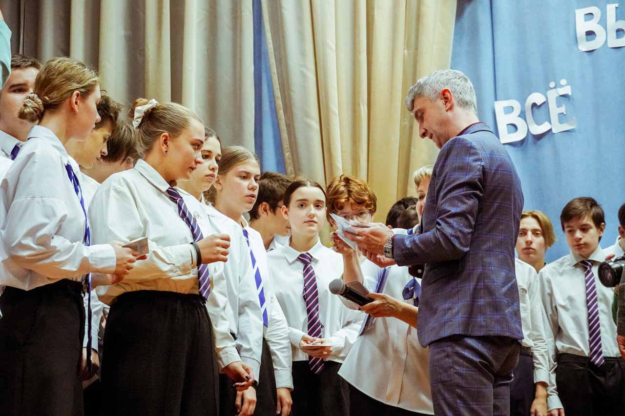 Во время встречи для ребят, которые уже учатся в новом инженерном классе гимназии, состоялась и первая торжественная церемония посвящения в юные инженеры.
