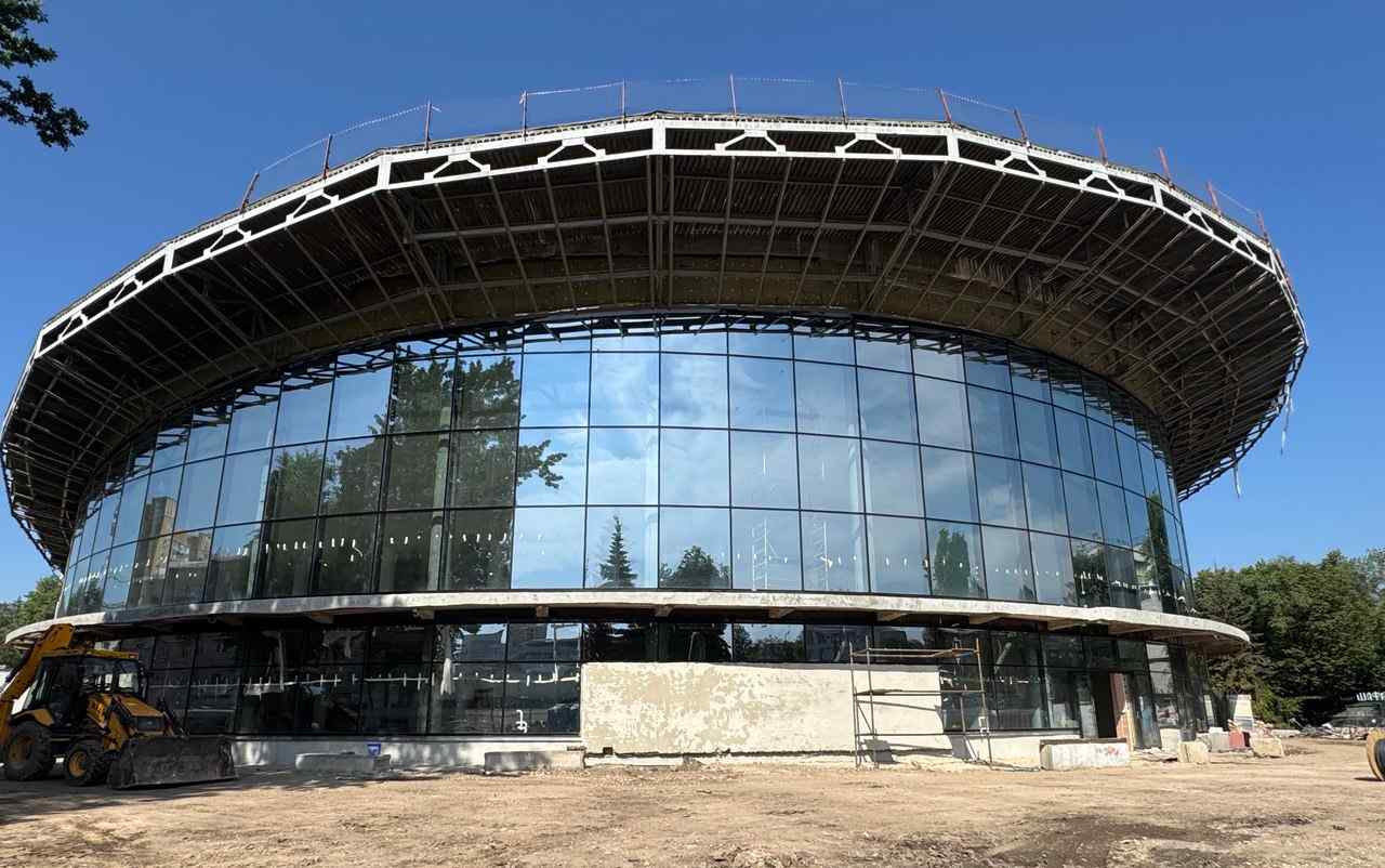 На сегодняшний день в здании цирка полностью завершено витражное остекление фасада: оно выполнено из двойного стеклопакета, внешний слой которого изготовлен из закалённого стекла. Общая площадь установленных окон и витражей составила более 1 тыс. кв. м. Сейчас строители выполняют работы по устройству фасада, в частности – по его утеплению и окраске.
