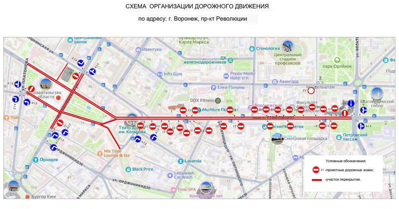Также с 0 часов 20 сентября на сутки будет закрыто движение по улице Плехановской (от улицы Пушкинской до улицы Дзержинского), по обеим сторонам от здания правительства Воронежской области, площади Ленина (от проспекта Революции до улицы Плехановской и в обратном направлении), а также улицам Кардашова, проспекту Революции (от улицы Степана Разина до площади Ленина), Театральному проезду, улице Пушкинской (от проспекта Революции до улицы Средне-Московской).