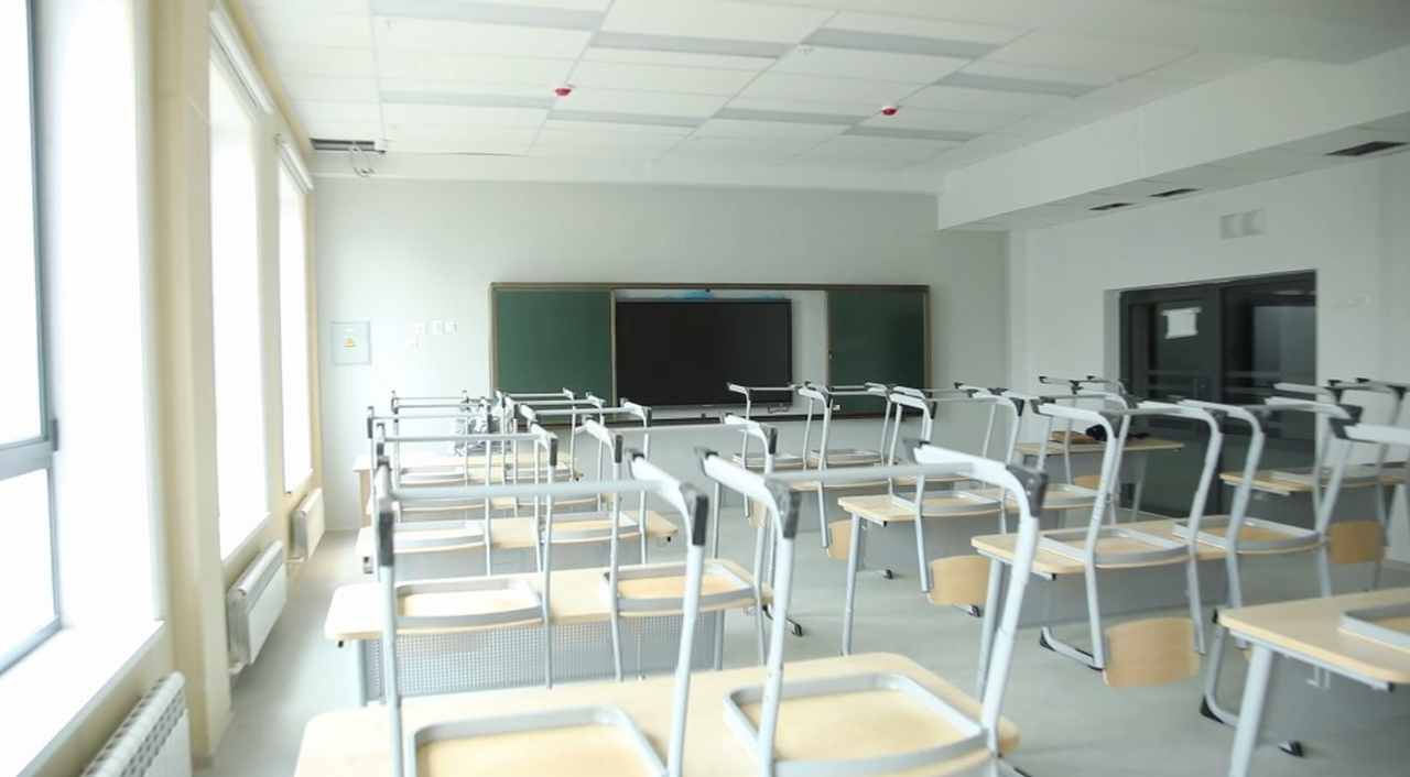 На первом этаже расставили шкафчики для верхней одежды учащихся начальных и старших классов. В специальных учебных классах (таких как кабинеты физики и химии) начато оборудование лабораторных столов.