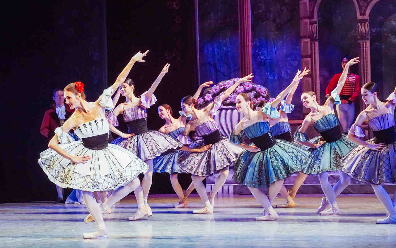 Знаменитое Grand Pas, которое представляет собой парад классического танца, вошло в спектакль в приближенном к историческому оригиналу виде – его на основе сохранившихся записей спектакля начала ХХ века восстановил балетмейстер Юрий Бурлака.