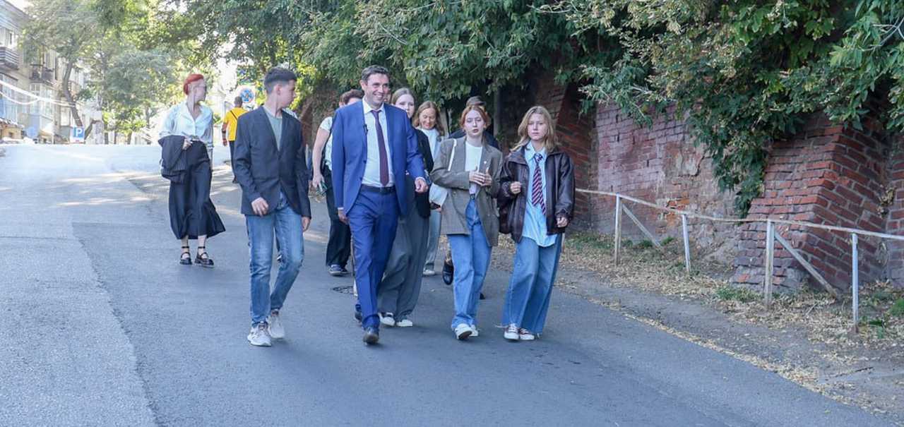 За час вчерашней, 9 сентября, прогулки успели многое с ребятами обсудить: можно ли стилизовать арку в жилом доме у ВГУ под морскую тематику, необходимость обновления навигации к городским достопримечательностям, возможность развития сквера Учёных и размещения в нём новых интересных композиций, поспорили даже, нужны ли куар-коды на объектах. Собеседники сошлись во мнении, что спуск по улице Декабристов нужно усовершенствовать, сделав шаги ступеней соразмерными и одинаковыми и, как вариант, в тематике воронежского кораблестроения. Также обсудили необходимость ремонта по улице Бехтерева.