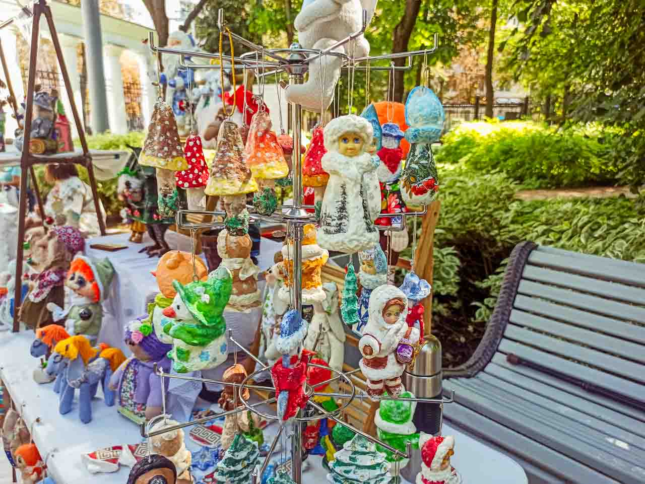 Стенд Валентины − машина времени: здесь пахнет детством, мишурой и клеем, а ватные игрушки, кажется, вот-вот закружатся под елкой.