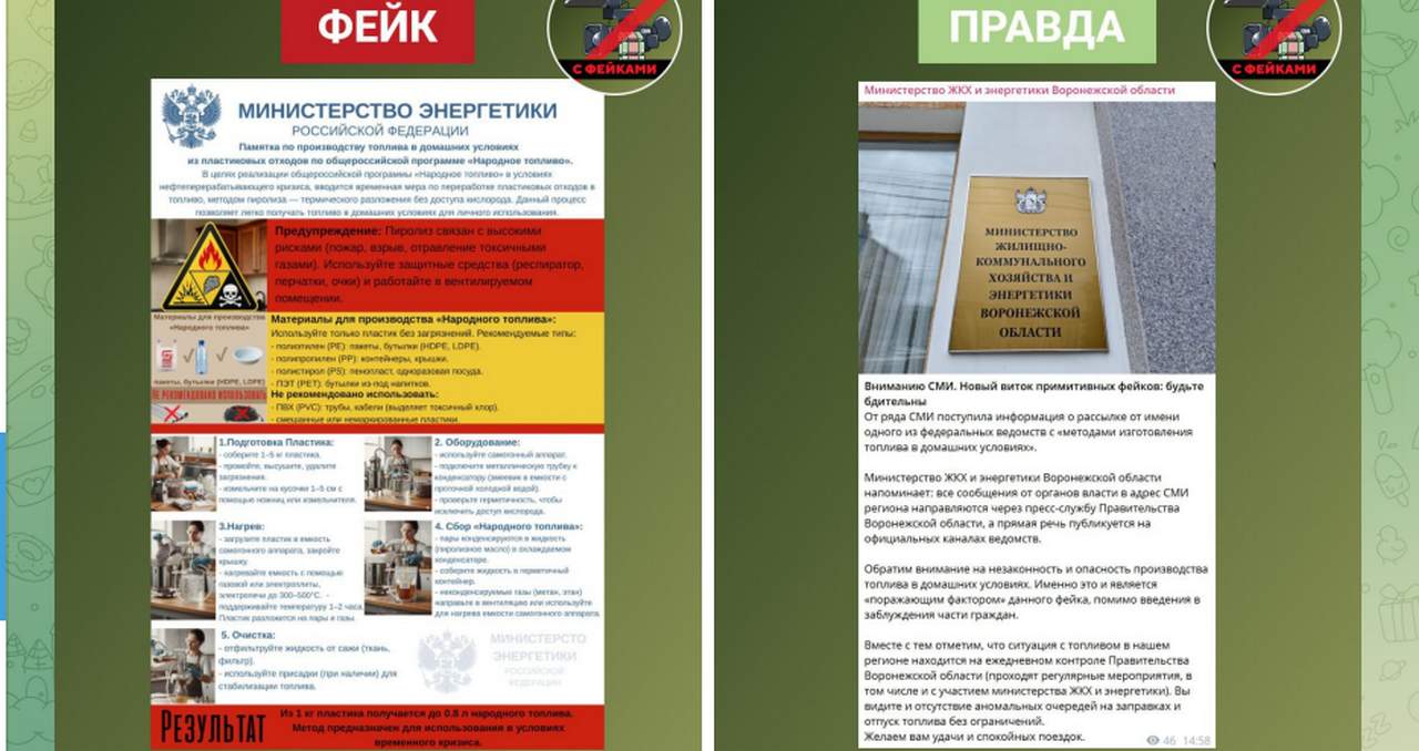 Так вот, всё это ложь. На самом деле программы «Народное топливо», направленной на домашнее производство топлива, не существует. Министерство ЖКХ и энергетики Воронежской области официально опровергло эту информацию.