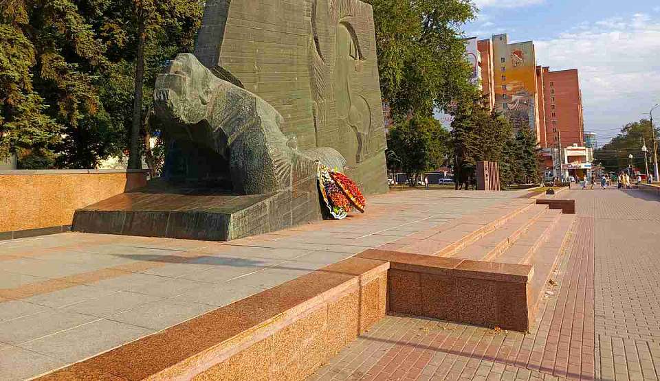 Напомним, что не так давно здесь проходили ремонтно-реставрационные работы. Памятник заметно обновили. Но вот вертикальная плита постамента у Вечного огня начала вдруг отваливаться.
