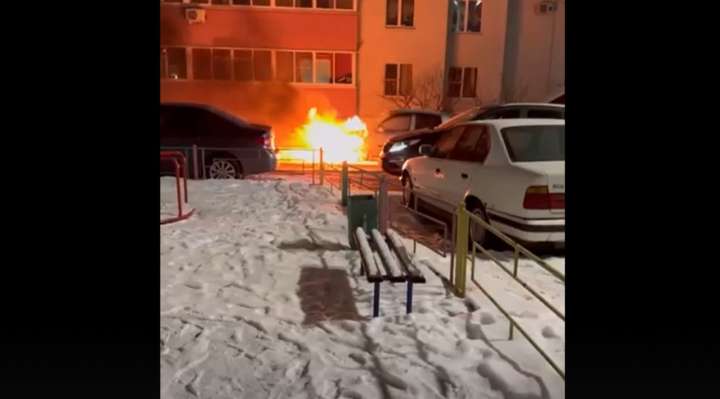 Hyundai сгорел утром в ЖК «Ботанический сад» в Воронеже