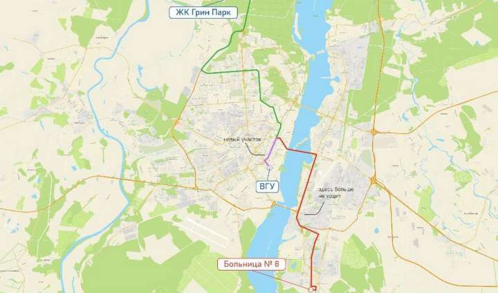 По обновлённой схеме начнёт двигаться автобус маршрута №44 в Воронеже