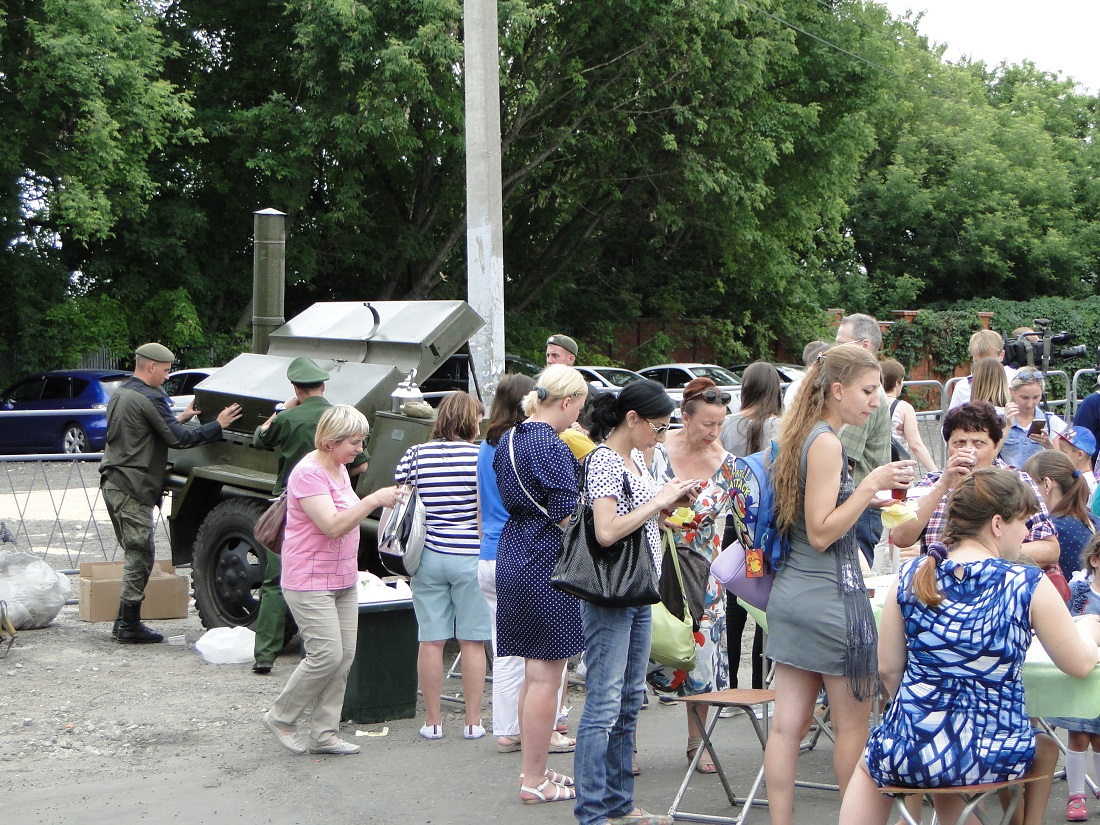 Для всех гостей выставки юбиляры организовали полевую кухню. Здесь же работал мобильный пункт приема на службу по контракту.