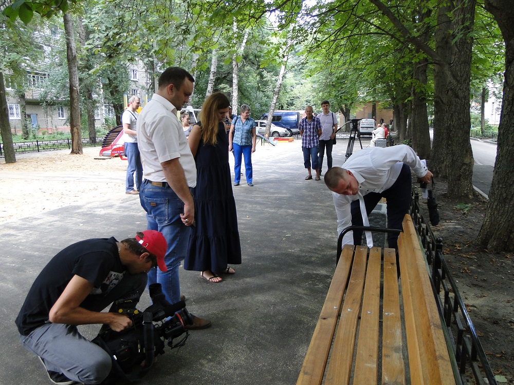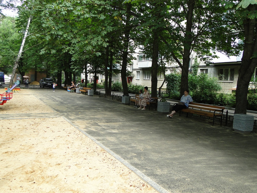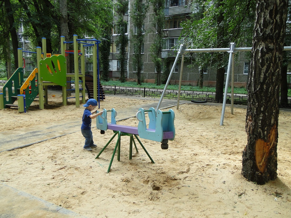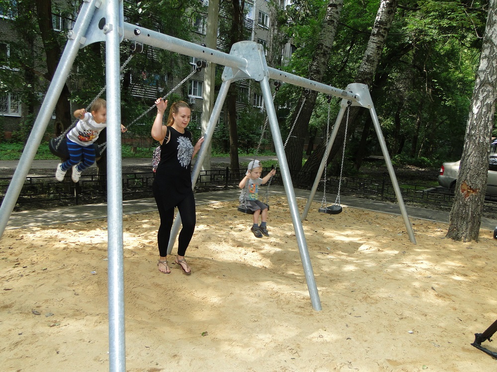 Первый двор, в который приехала комиссия, находится на ул. Хользунова, 29. Сейчас здесь очень уютно, и трудно представить, что на протяжении долгого времени двор был заброшен и никому не нужен. Теперь возле дома укатан новый асфальт, автомобили стоят отдельно, дети играют сами по себе на просторной огороженной площадке. Мамы спокойны и счастливы. Площадка стала центром притяжения и для маленьких жителей из соседних домов.