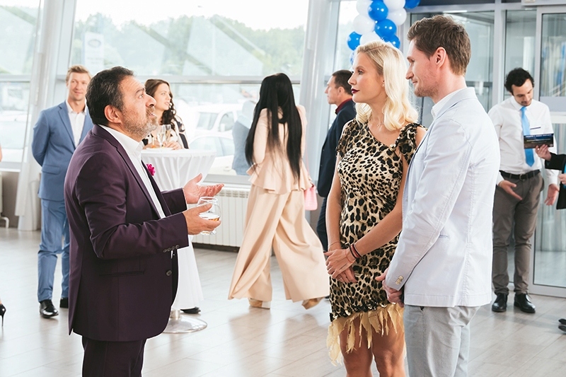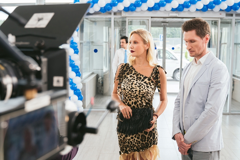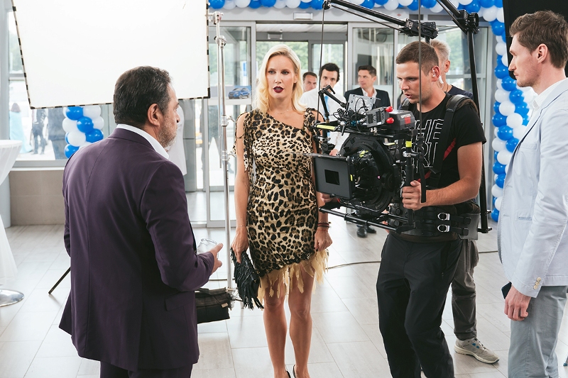 По сюжету, пока светская львица готовится к выступлению, предприимчивый Леша Иванов (Михаил Трухин) организовывает внутри автосалона контактный зоопарк. Вырвавшись из-под контроля, животные разбегаются и пугают телеведущую, которая в страхе взбирается на капот автомобиля. На съемках Летучую встретили енот, баран, крысы и даже рысь. Правда, Елена признавалась, что ее не пугают такие «партнеры»: «Это не змеи и не волки, так что не страшно. Вообще я очень люблю животных, единственно – боялась, что меня покусают".