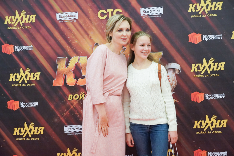 – Да, было такое. Вот здесь (показывает на главную афишу сериала «Кухня. Война за отель» – прим. авт.) я в своем платье. Оно, правда, было небесно-голубым, но, чтобы не оттенять величие моего партнера (Григорий Сиятвинда, исполнитель роли Михаила Джековича – прим. авт.), его сделали коричневым. Приношу, да. Я вдруг понимаю, что в моем гардеробе есть ее платья, и я их ей дарю, потому что после съемок я уже не ношу эти вещи.