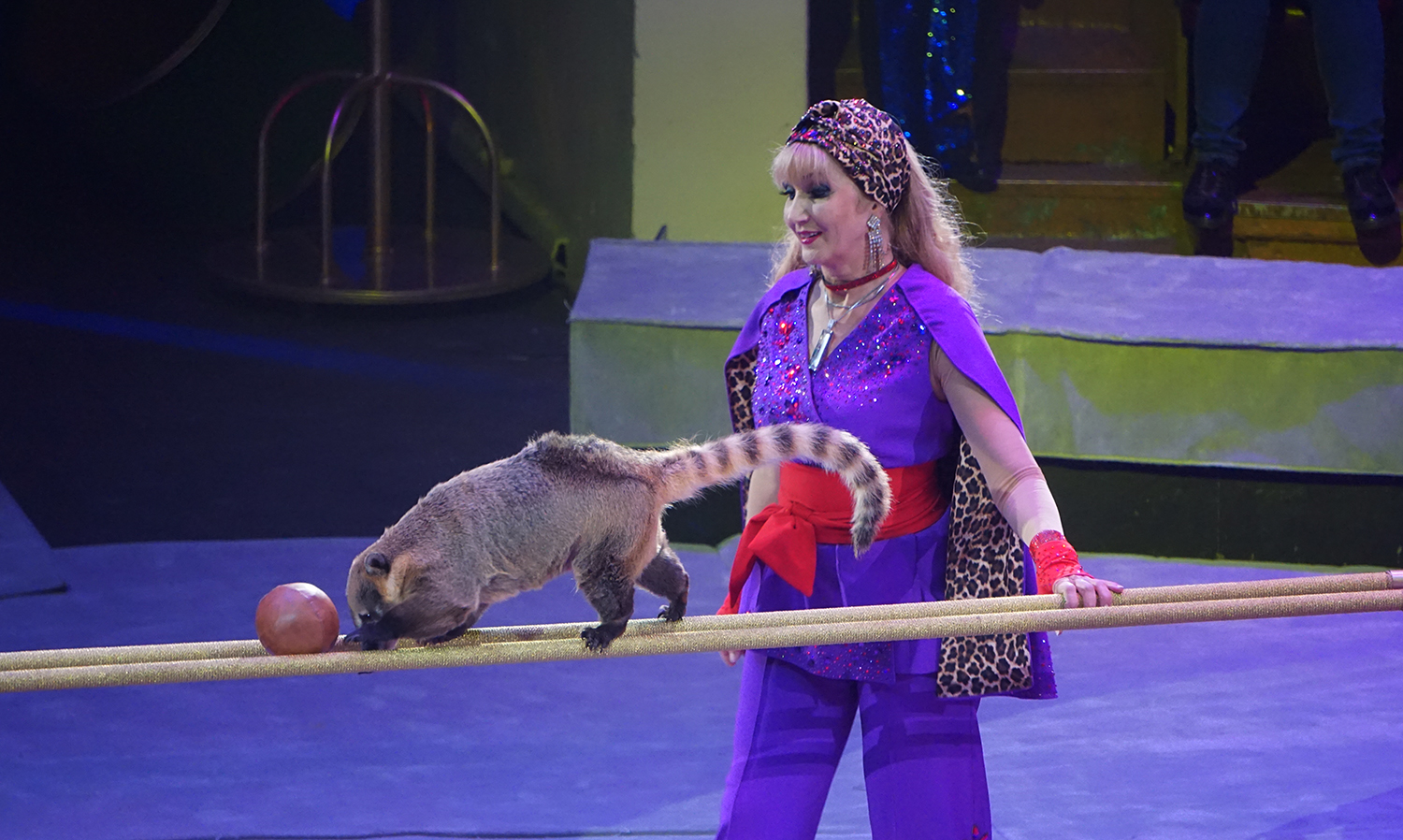 Детвора с восхищением наблюдает за волшебным миром экзотических животных в номере "ЗооОтель", руководит которым Алла Сычева. Здесь и огромные пеликаны, и очаровательные носухи, а еще – белый и серый дикобразы. Кстати, длина иголок дикобраза может достигать 50 см при толщине 7 мм! В номере также можно увидеть огромных холеных верблюдов. Оказывается, "корабли пустыни" обладают отменным зрением и могут увидеть идущего человека за 1 километр, а движущийся автомобиль – за 3-5 километров! Запах влаги и свежее пастбище эти уникальные животные ощущают за 40-60 километров, и несмотря на их внешнюю флегматичность, они могут довольно резво бегать, развивая скорость до 65 километров в час.