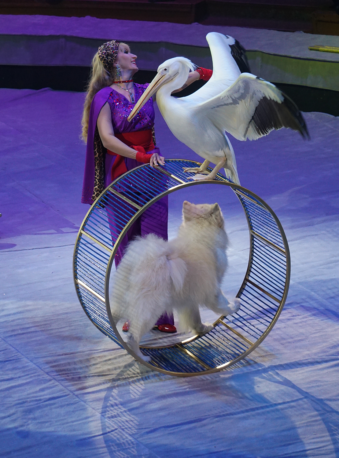 Очень интересен и уникальный номер жонглера на велосипеде Ерофея Машукова, который соединил два совершенно разных направления – эквилибр на велосипеде и один из самых древних жанров циркового искусства – жонглирование. Способность артиста удерживать равновесие, управлять велосипедом и при этом жонглировать несколькими предметами одновременно завораживает воронежцев с первого взгляда. Профессиональное исполнение трюков под стремительно закрученные мелодии соул-джаза и невероятная энергетика артиста просто не могут не зарядить позитивными эмоциями!