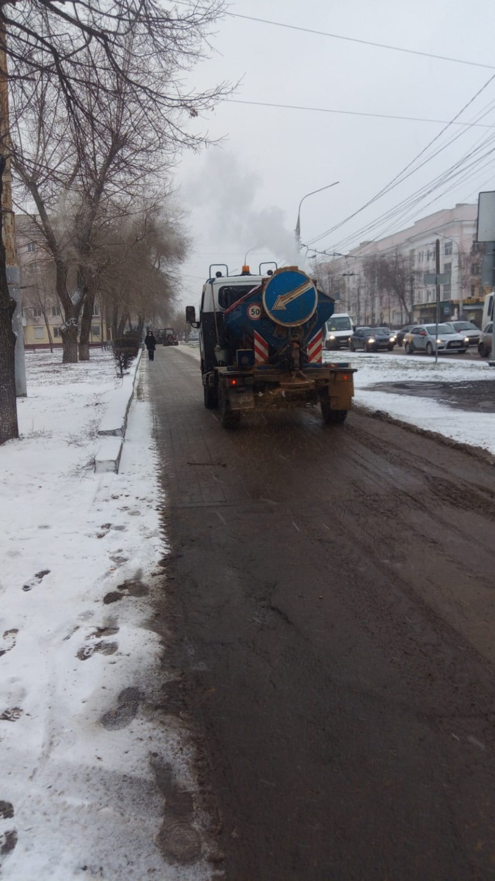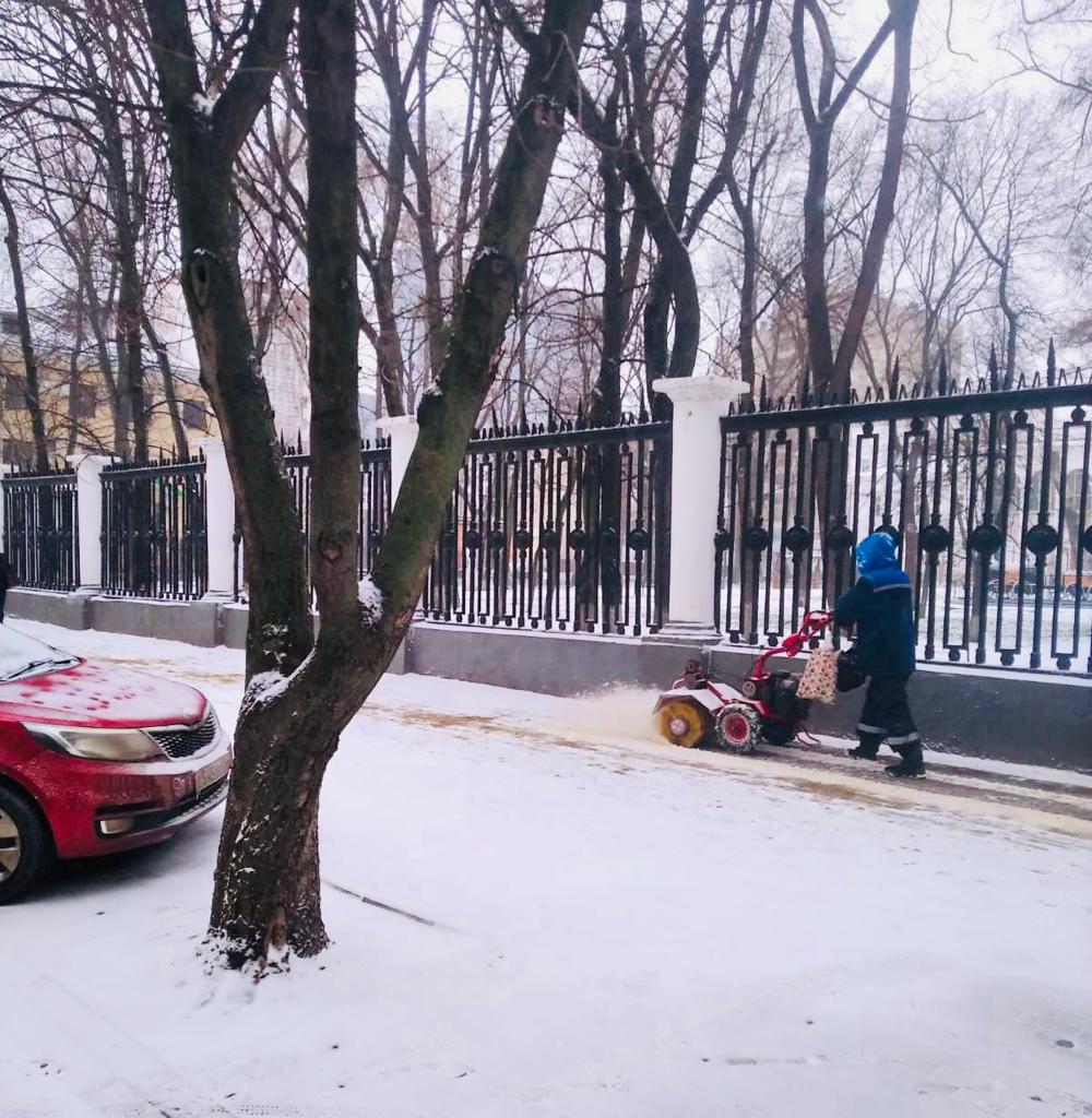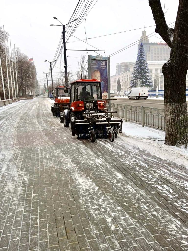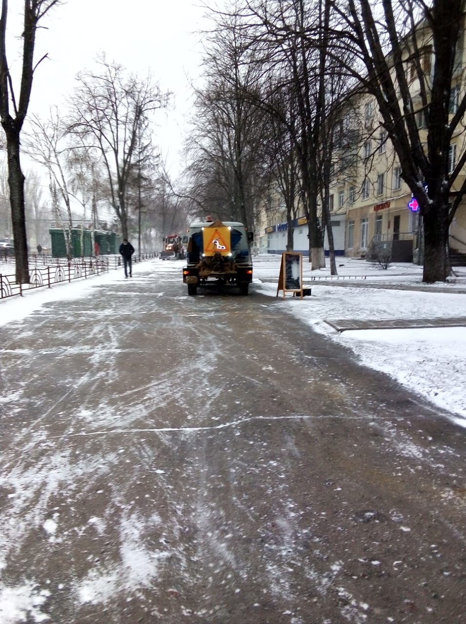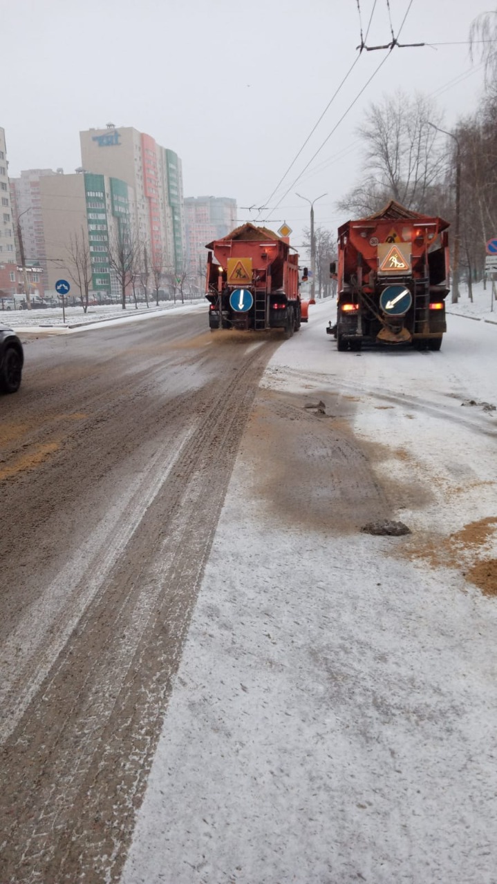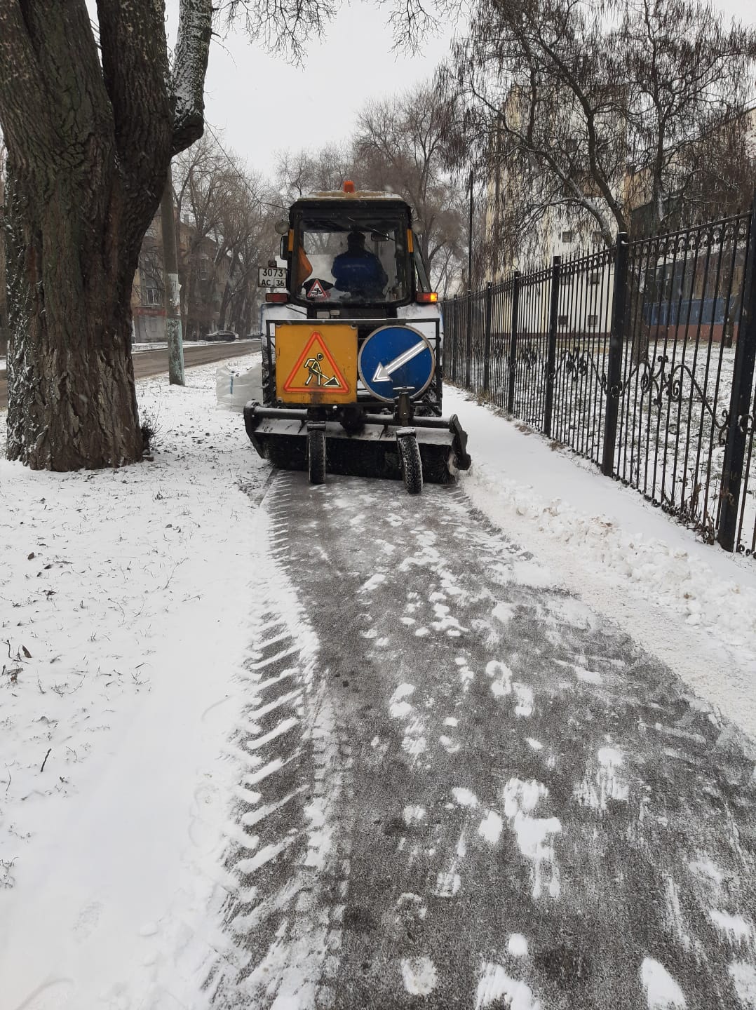 Комбинаты благоустройства всех районов города трудятся, как грузчики. Уборка от снега идет на магистралях, тротуарах, территориях у остановок общественного транспорта. После очистки дороги посыпают пескосмесью.