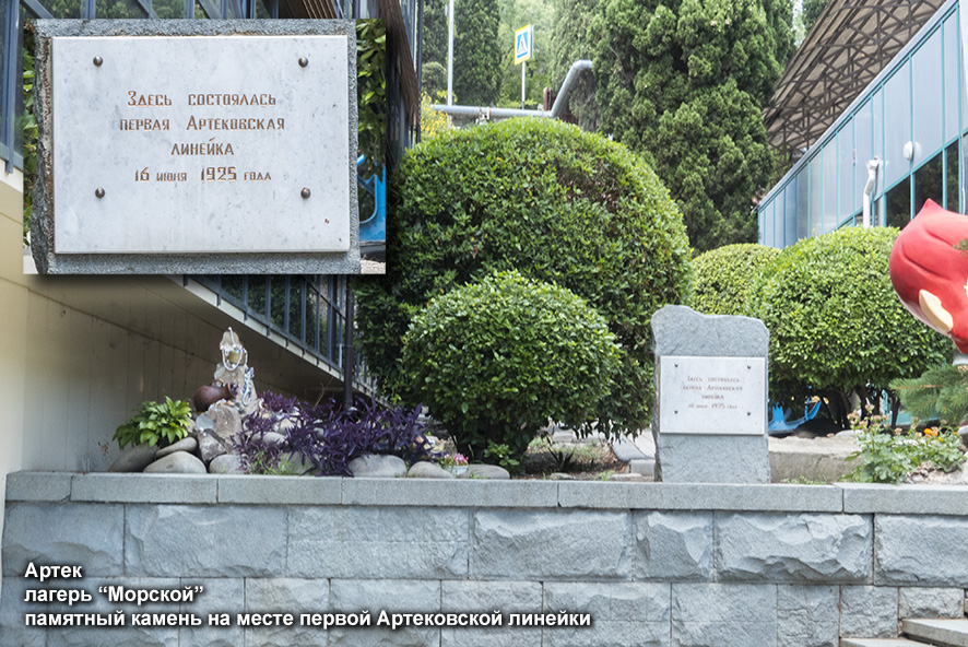 Следующая остановка – место, откуда начался «Артек» в 1925 году. Сейчас здесь находится лагерь «Морской». Дело в том, что современный «Артек» – это несколько лагерей. У каждого свое название и символика. У каждого свои традиции. «Артек» – это некий собирательный образ и общий бренд. Но «Морской» – это начало начал. Его современные жилые корпуса мало чем напоминают о той далекой поре. Но память о тех временах бережно хранят. На месте, где 16 июня 1925 года состоялась первая артековская линейка, установлен мемориальный камень.