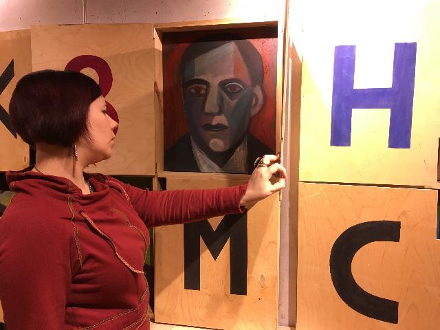 Портреты «убитых», каждый из которых соответствует той или иной букве русского алфавита, оформлены отчасти театрально – размещены в непрезентабельных деревянных ящиках-близнецах с открывающимися дверцами. За этими безликими ячейками, зловещими «заслонками» – судьбы поэтов и граждан. Которых – без вины, как правило, виноватых – закрыли раз и навсегда.
