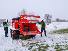 Эта машина в течение года используется для переработки веток и стволов деревьев, остающихся после различных работ. Измельченную в щепу древесину используют при благоустройстве – в первую очередь, для засыпки открытого грунта. А в январе «Торнадо» применяют теперь для переработки сотен выброшенных жителями елей и сосен.