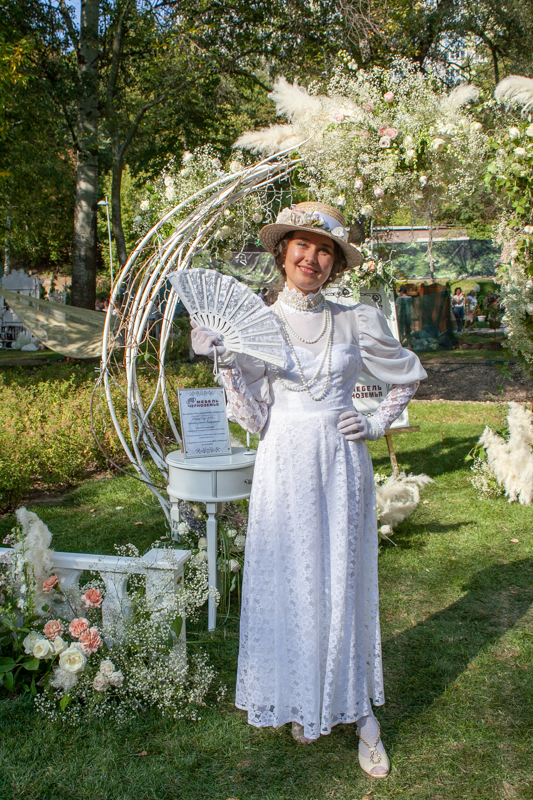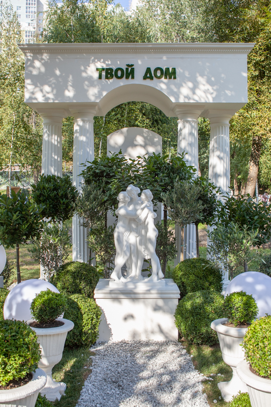 Прогуливаясь по парку, можно набрести и на известный чеховский сад: для его исполнения выбраны светлые оттенки, которые, по словам флористов, символизируют спокойствие и радость времяпровождения. Тут же чеховская героиня, но явно не обремененная мыслью о скорой продаже «Вишневого сада».