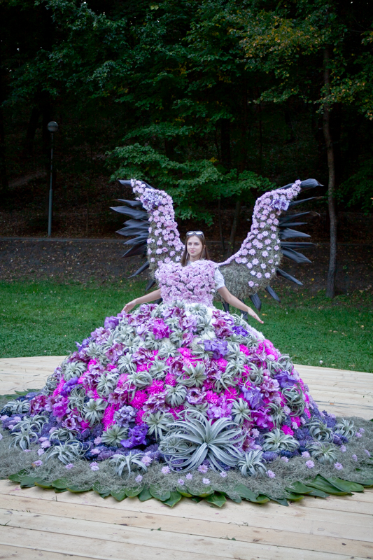 Королевская тематика нашла продолжение и в фотозонах. В этот раз решили не создавать одинаковые платья для фотокарточек, а сделать одно, но – королевское. И, кажется, не прогадали: чтобы примерить платье из 1 тыс. орхидей, нужно отстоять в нехилой очереди.