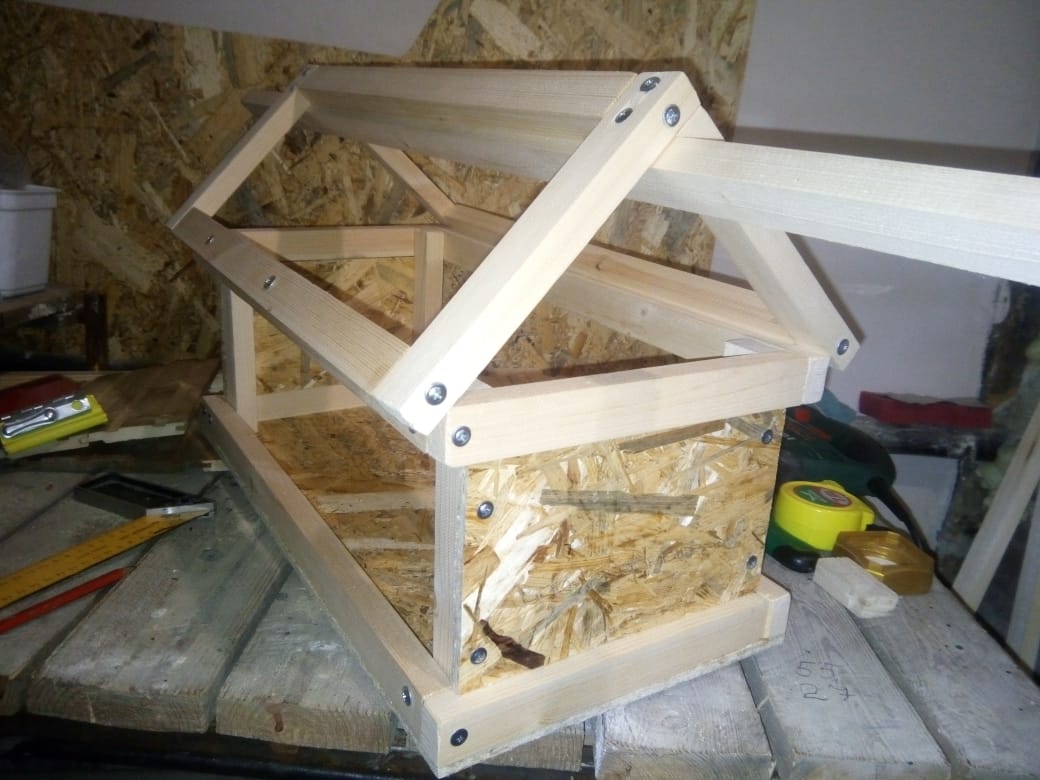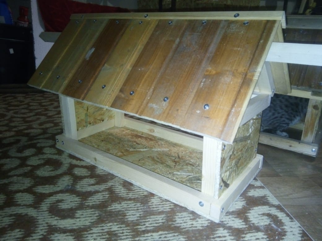 «Я не стала дожидаться мужа, который не мог оторваться то от салатов, то от телевизора, и решила построить кормушку сама, – пишет Ксения. – На самом деле в строительстве кормушки нет ничего сложного и, тем более, дорогостоящего. Все, что требуется, – это обрезки брусков, фанеры, ОСП, вагонки и прочих пиломатериалов, немного крепежа, фантазии и желания творить добро».