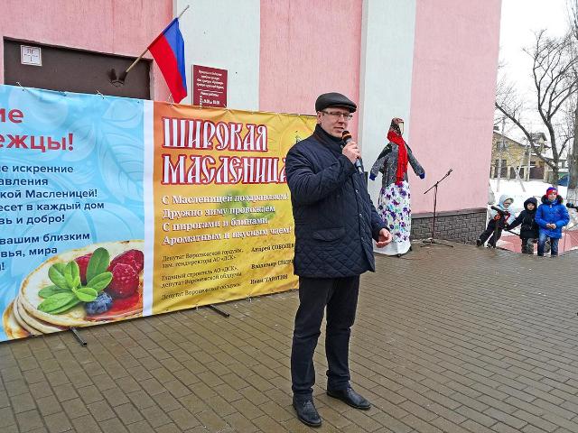Ароматные лакомства и выступления самодеятельных коллективов депутаты команды ДСК организовали и в микрорайоне Первое Мая. Участников поздравил депутат Воронежской областной Думы, главный строитель ДСК Владимир Свиридов: «Есть народная примета: чем больше будет приготовлено и съедено на Масленицу блинов, тем быстрее начнётся весна. Считается, что человек, который провёл масленичную неделю плохо и скучно, будет неудачлив в течение всего года. Так что приглашаем всех к угощению. Весело провожайте зиму, встречайте долгожданную весну! Будьте искренни и милосердны друг к другу, дарите тепло своим близким, крепкого здоровья, терпения и благополучия! Пусть приходящая весна принесёт счастье в ваши дома и семьи, наполнит их светом, теплом, добром и любовью!»