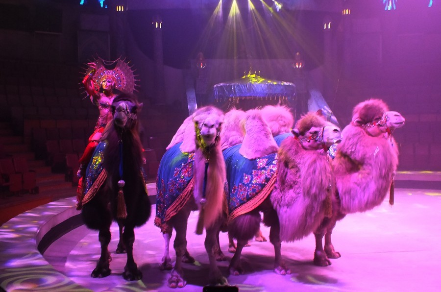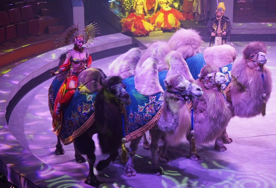 Вы видели когда-нибудь на манеже целый караван верблюдов? Константин Растегаев покажет уникальный номер, где задействовано сразу 8 двугорбых властителей пустыни, которые будут горделиво прохаживаться по манежу, синхронно выполняя различные команды дрессировщика. Дети будут в восторге и от очаровательных обезьянок, и от пушистых собачек. Гвоздем программы станет аттракцион единственного в мире дрессировщика группы гиппопотамов Тофика Ахундова.
