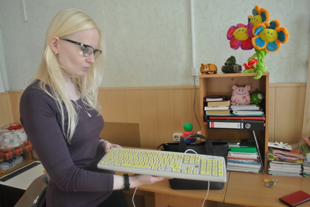Например, Юлия Фадеева (зрение +7,5) сама окончила школу-интернат № 3 и даже не предполагала, что жизнь занесет ее на работу в специализированную библиотеку.