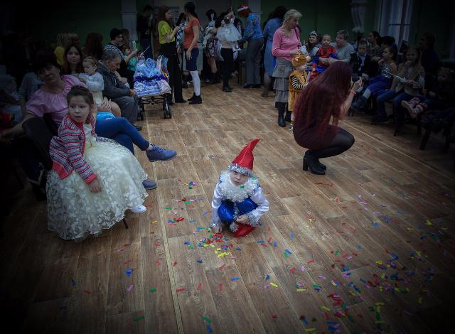 Праздник ведёт Снегурочка Катерина Бабкина, она уже не первый год помогает Ксении в проведении праздников в хосписе, поэтому знает, какие загадки деткам загадывать и какой интерактив использовать. Пока ведущая играет с детьми, рассматриваю их лица. Вот маленькая «куколка» в беленьком платье, она подбегает к ёлочке и пытается дотронуться до её иголок. Колется. «Куколка» одергивает пальчик и расплывается в улыбке. А вот – маленький гномик, он пытается обратить на себя моё внимание и играет с краном, что расположен на трубе под окном. Спрашивает меня про разнообразие объективов из сумки фотографа.