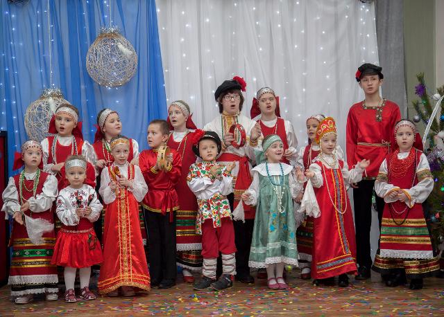 Но есть и другие дети. Менее активные. Мальчик лет 12 без новогоднего костюма, он почти лежит на груди у мамы. Он может передвигаться только с её помощью, но я вижу – его глаза улыбаются. А ребята-колясочники оказываются ещё теми озорниками и первыми выстраиваются в хоровод.